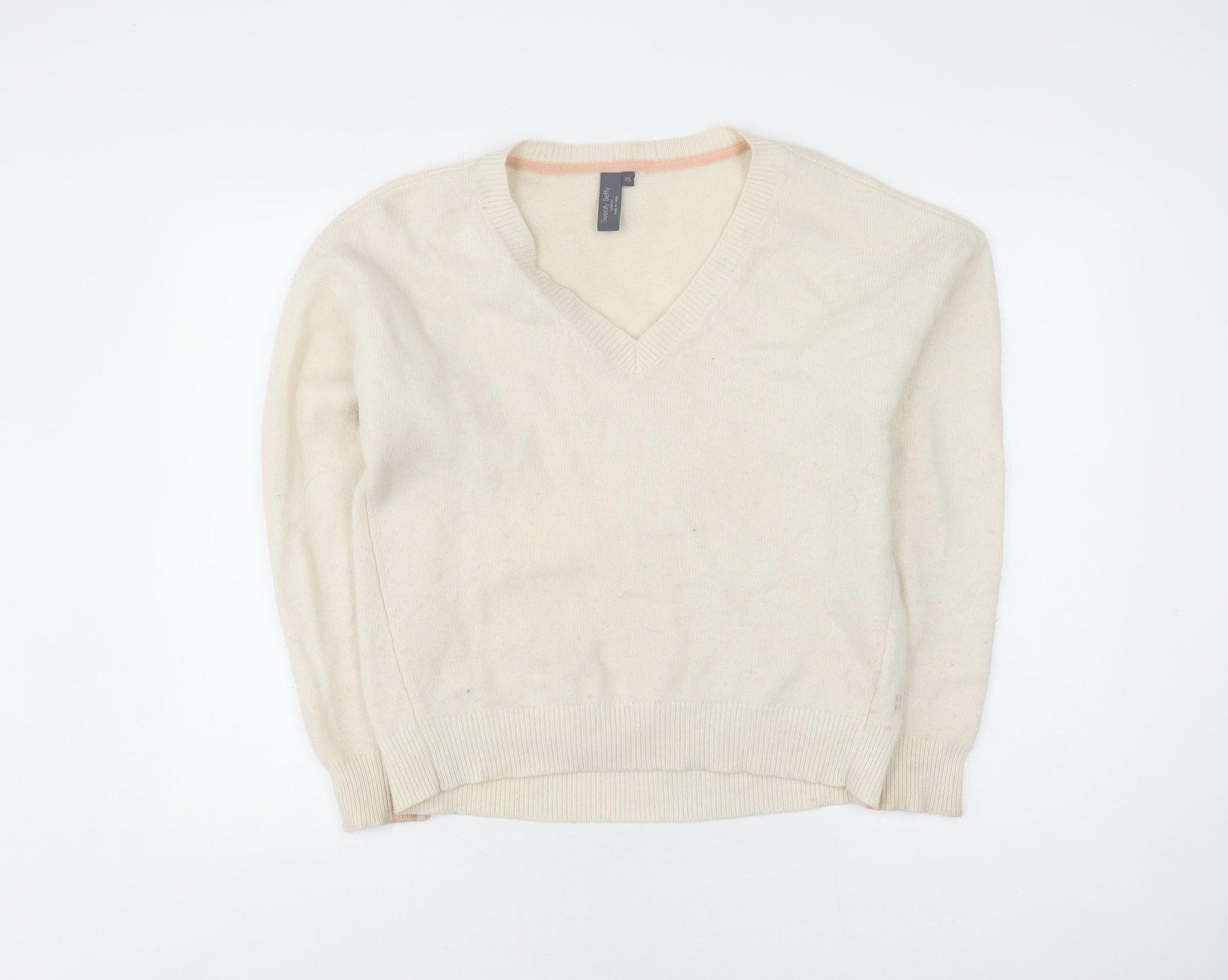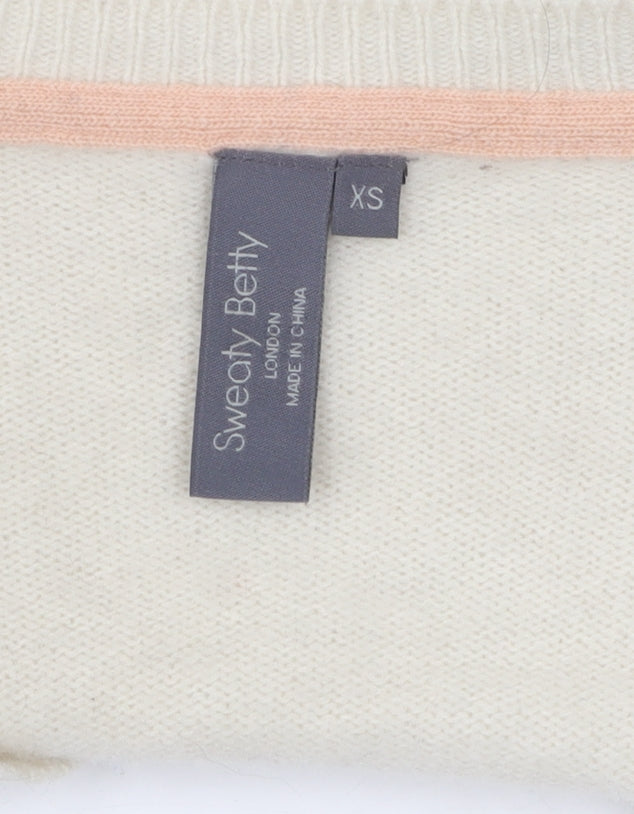 Sweaty Betty Women's White V-Neck Knit Pullover Jumper XS