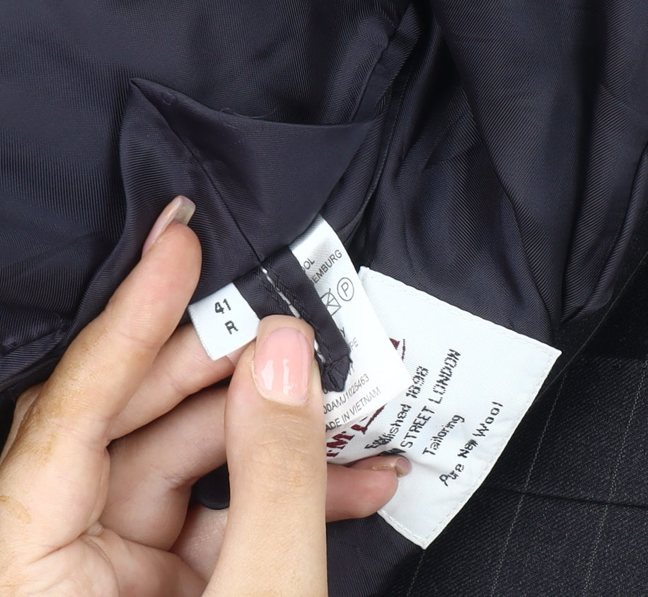 T.M. Lewin Men's Black Striped Wool Blazer 41R