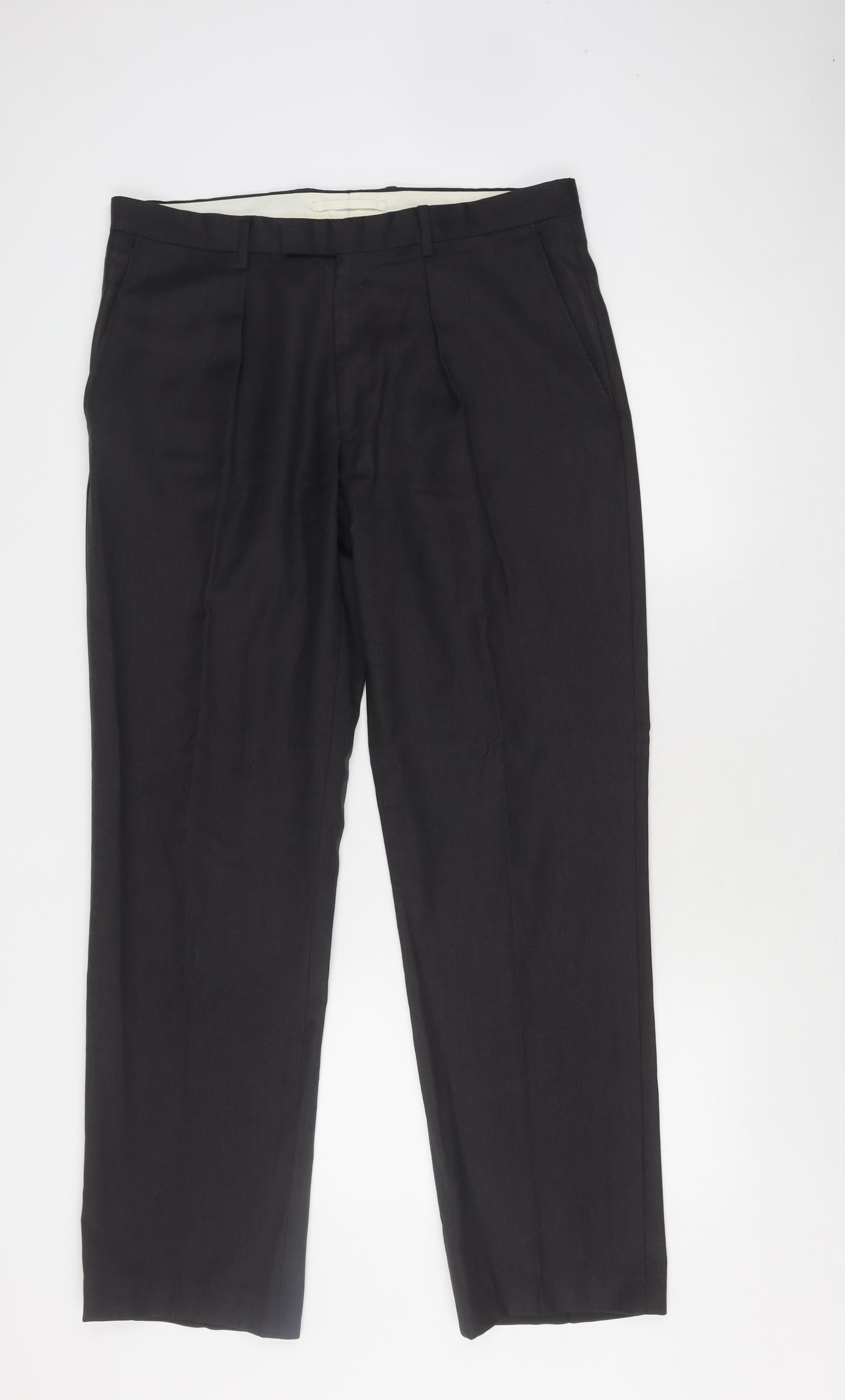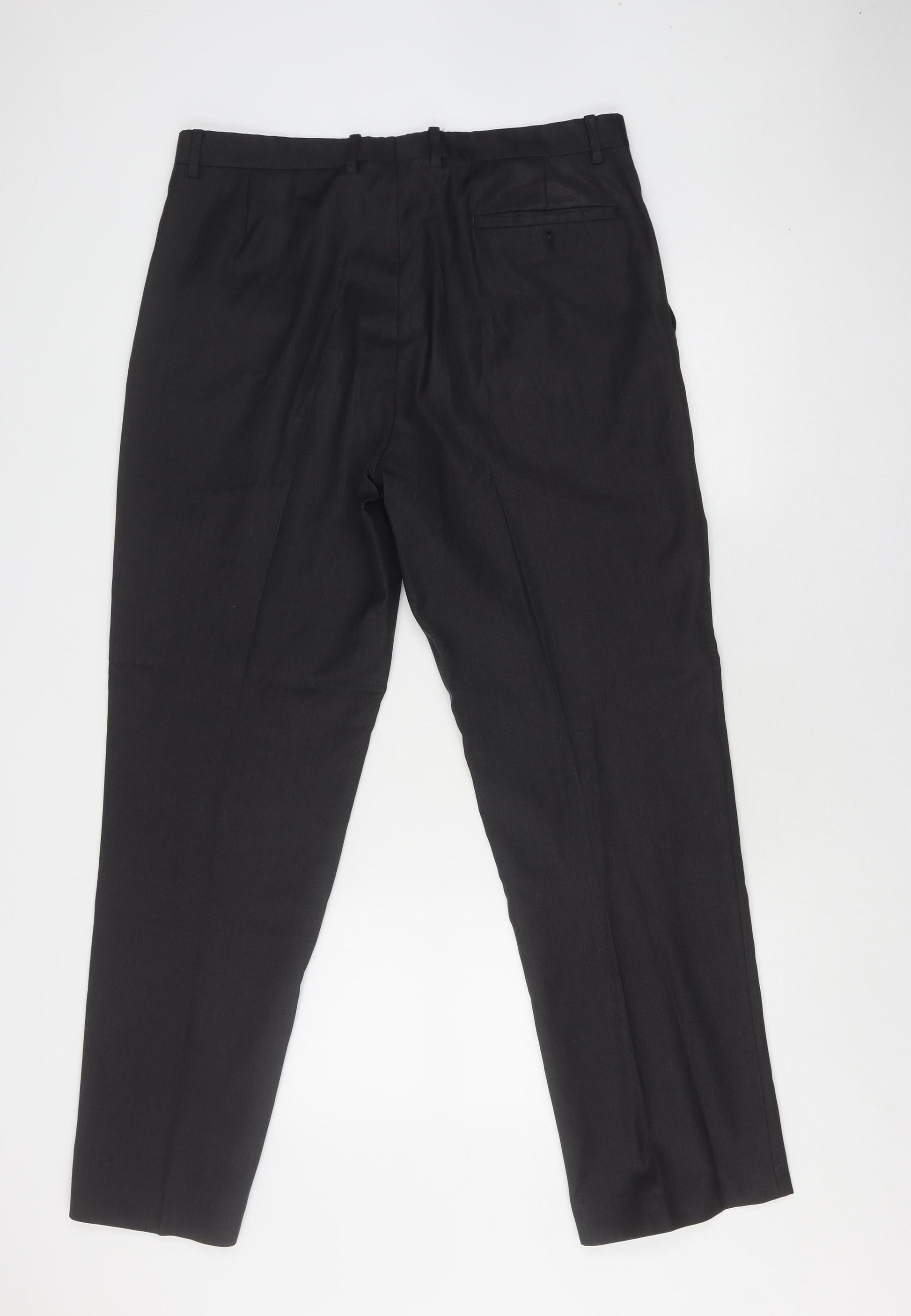T.M. Lewin Men's Black Wool Dress Trousers, Size 35
