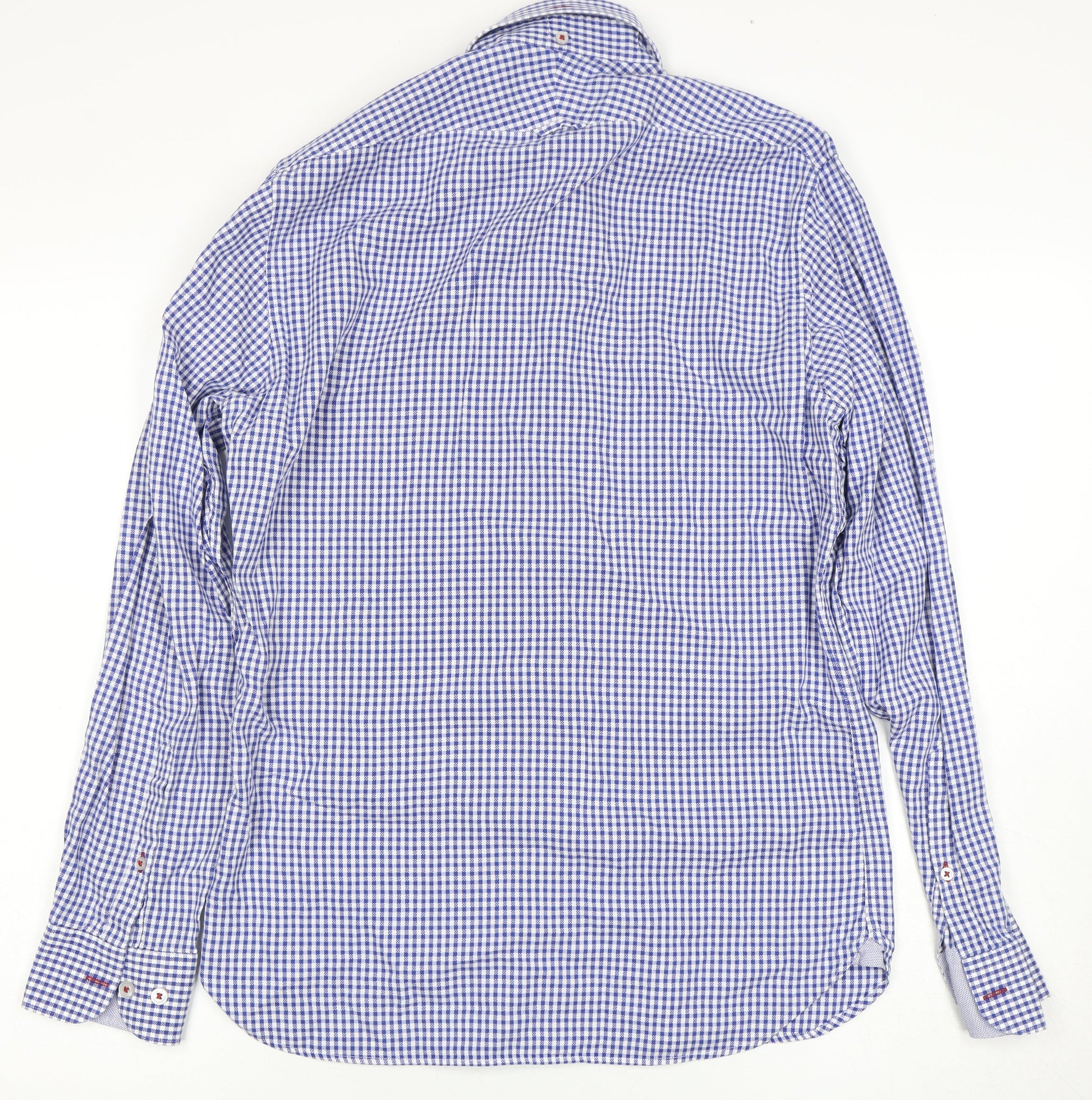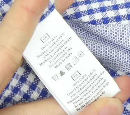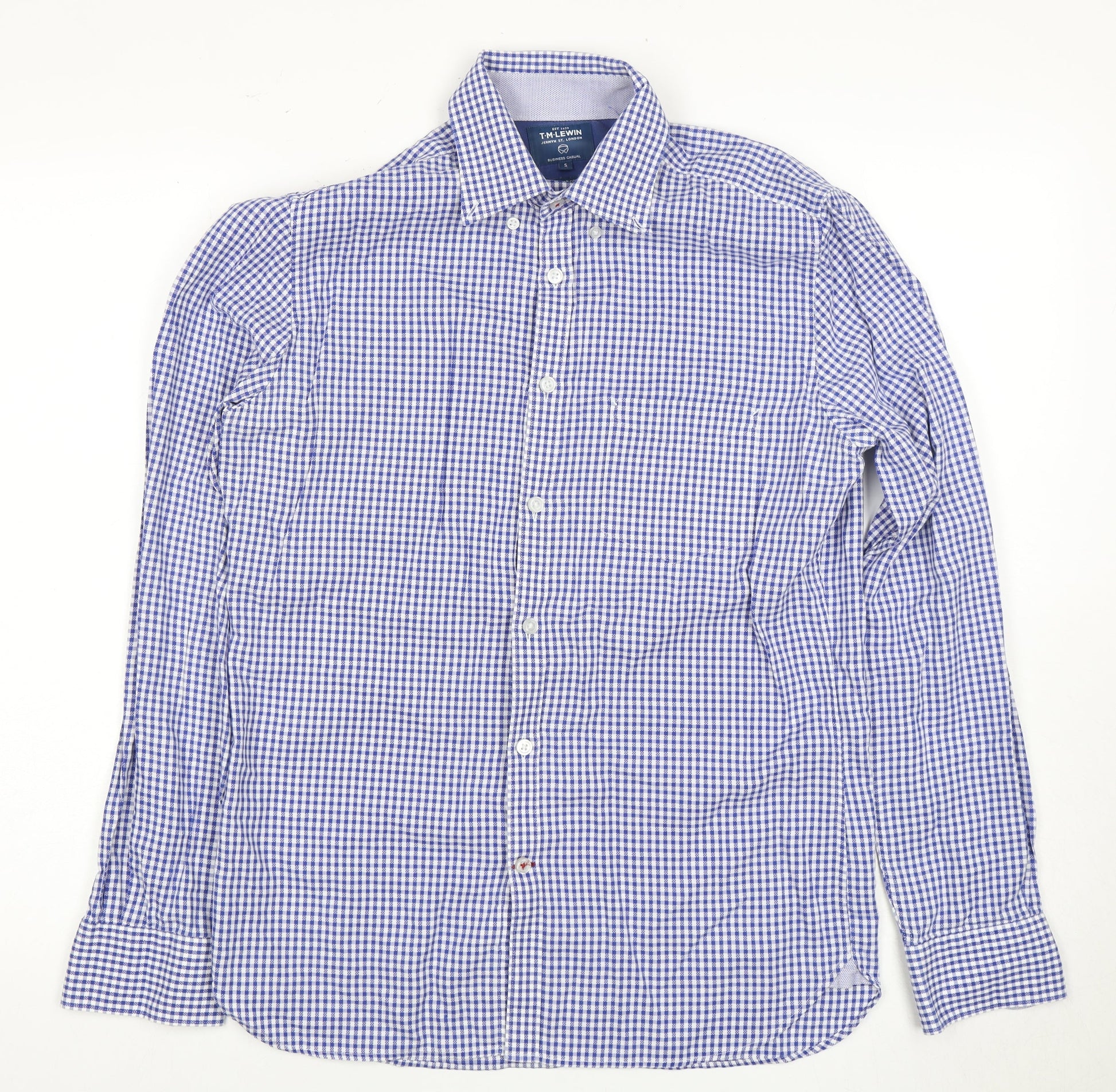T.M. Lewin Men's Blue Check Dress Shirt, S, Business Casual