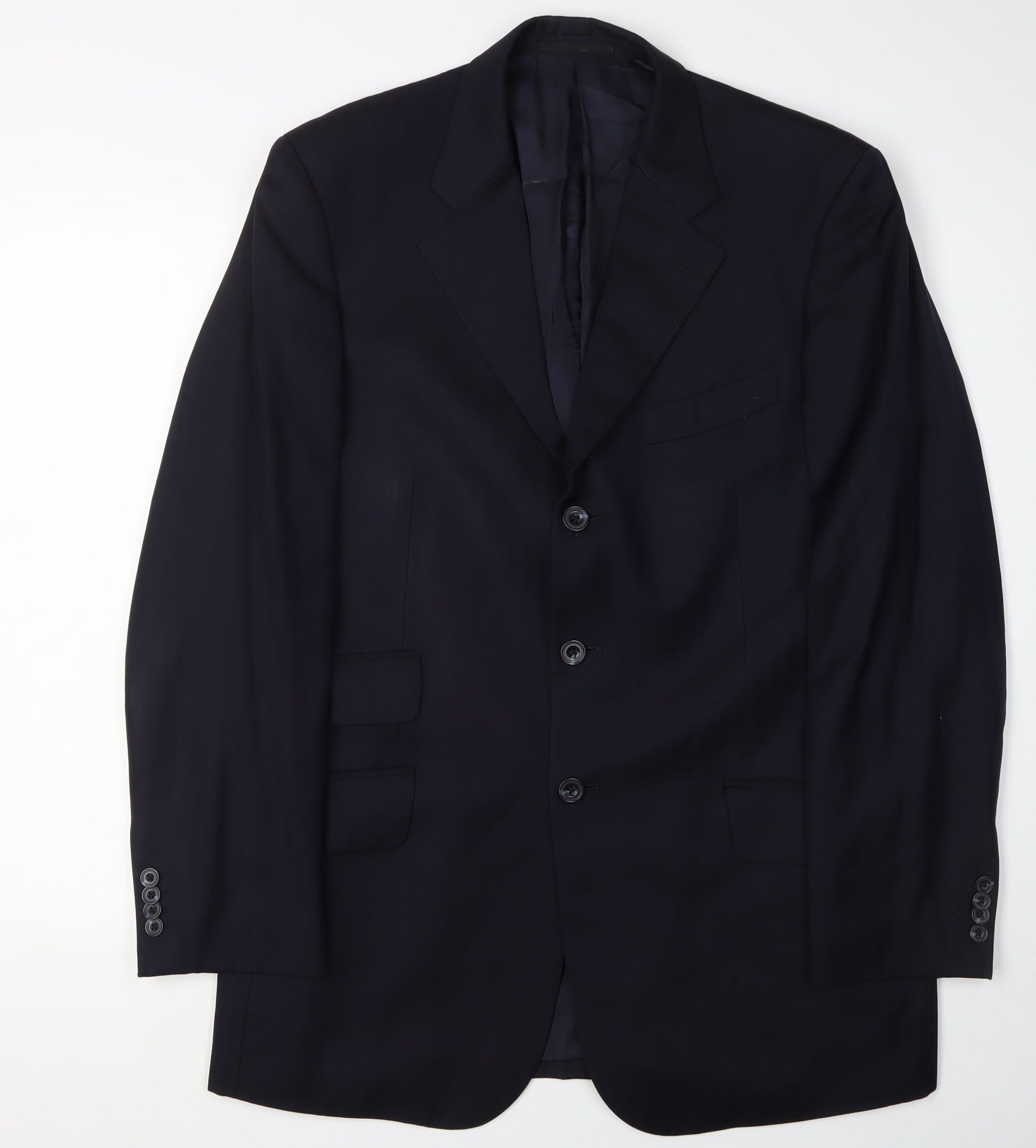 T.M. Lewin Men's Blue Wool Blazer 41R Herringbone