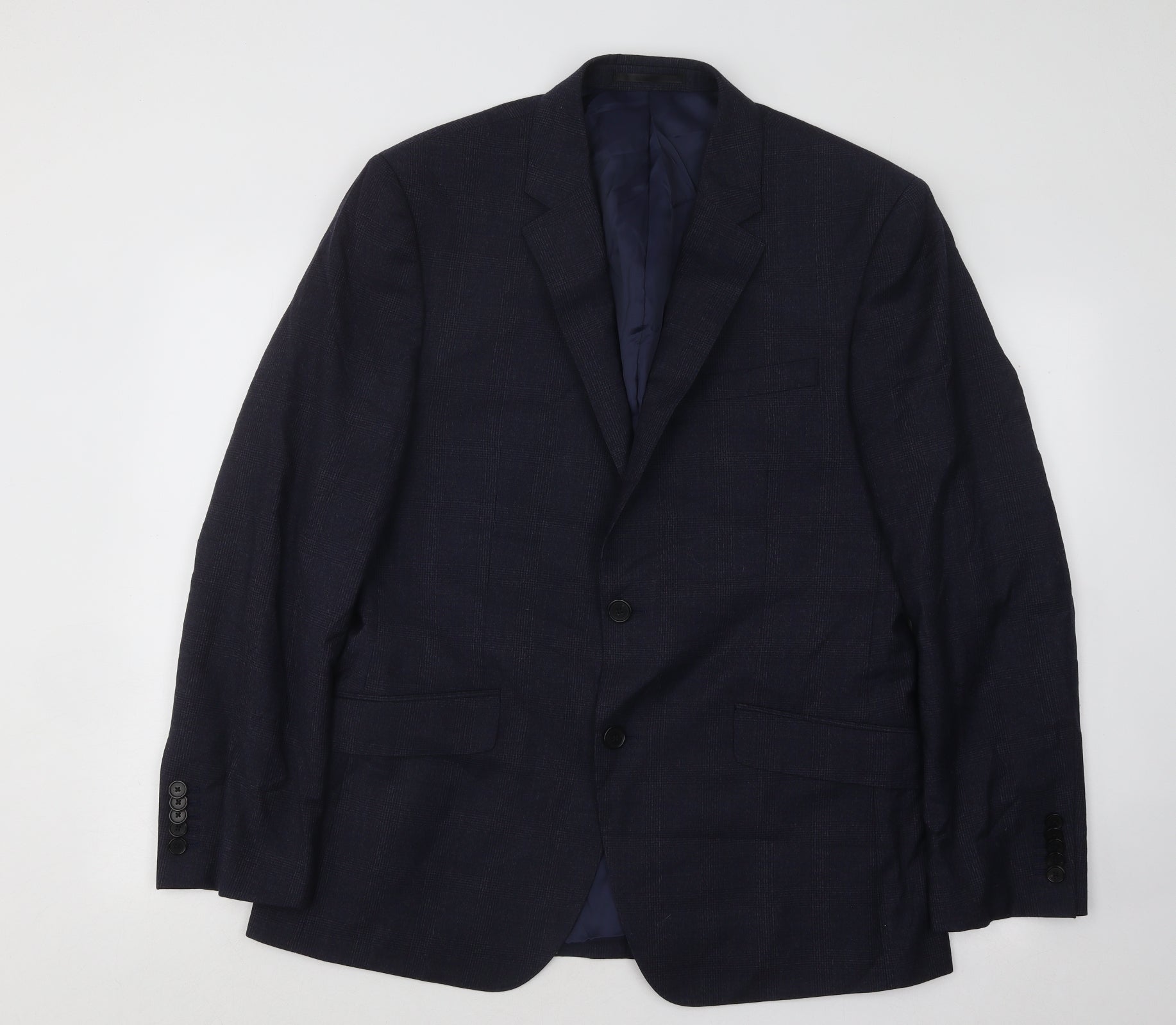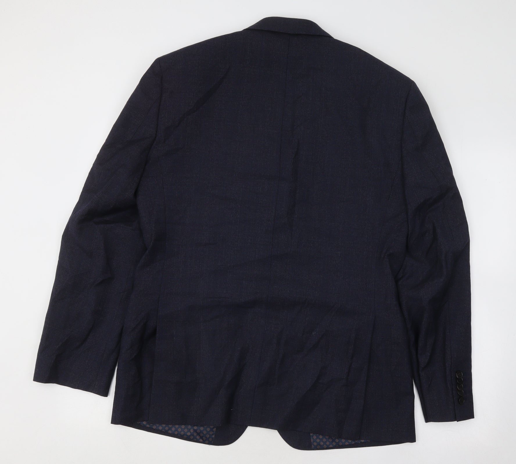 T.MLEWIN Mens Blue Plaid Wool Jacket Suit Jacket Size 40
