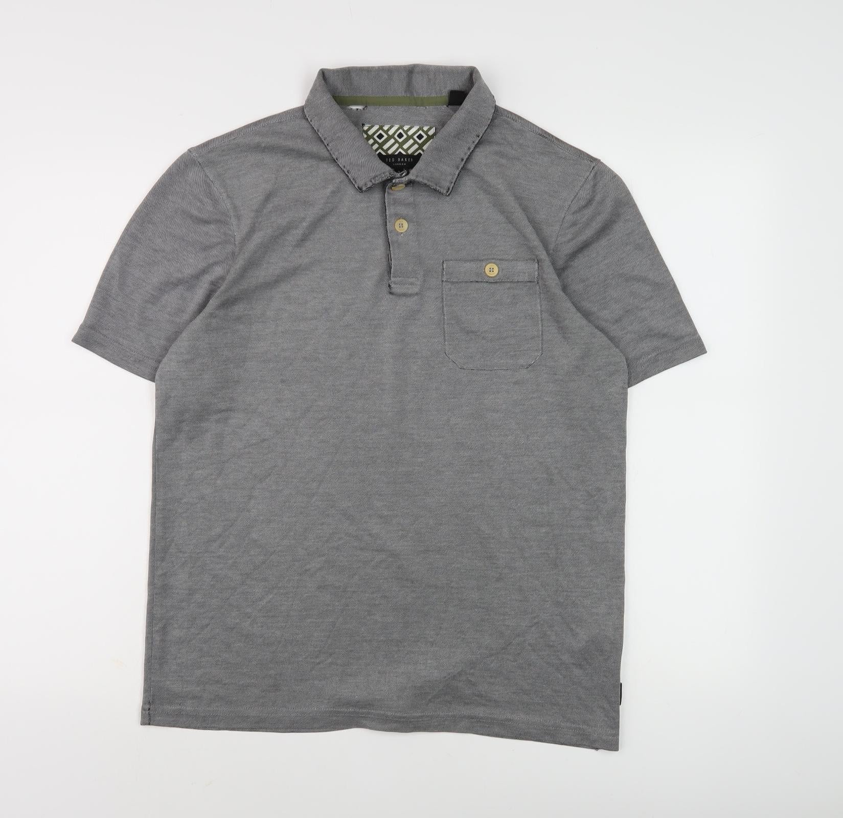 Ted Baker Grey Men's Polo Shirt Size 3 Button Accents