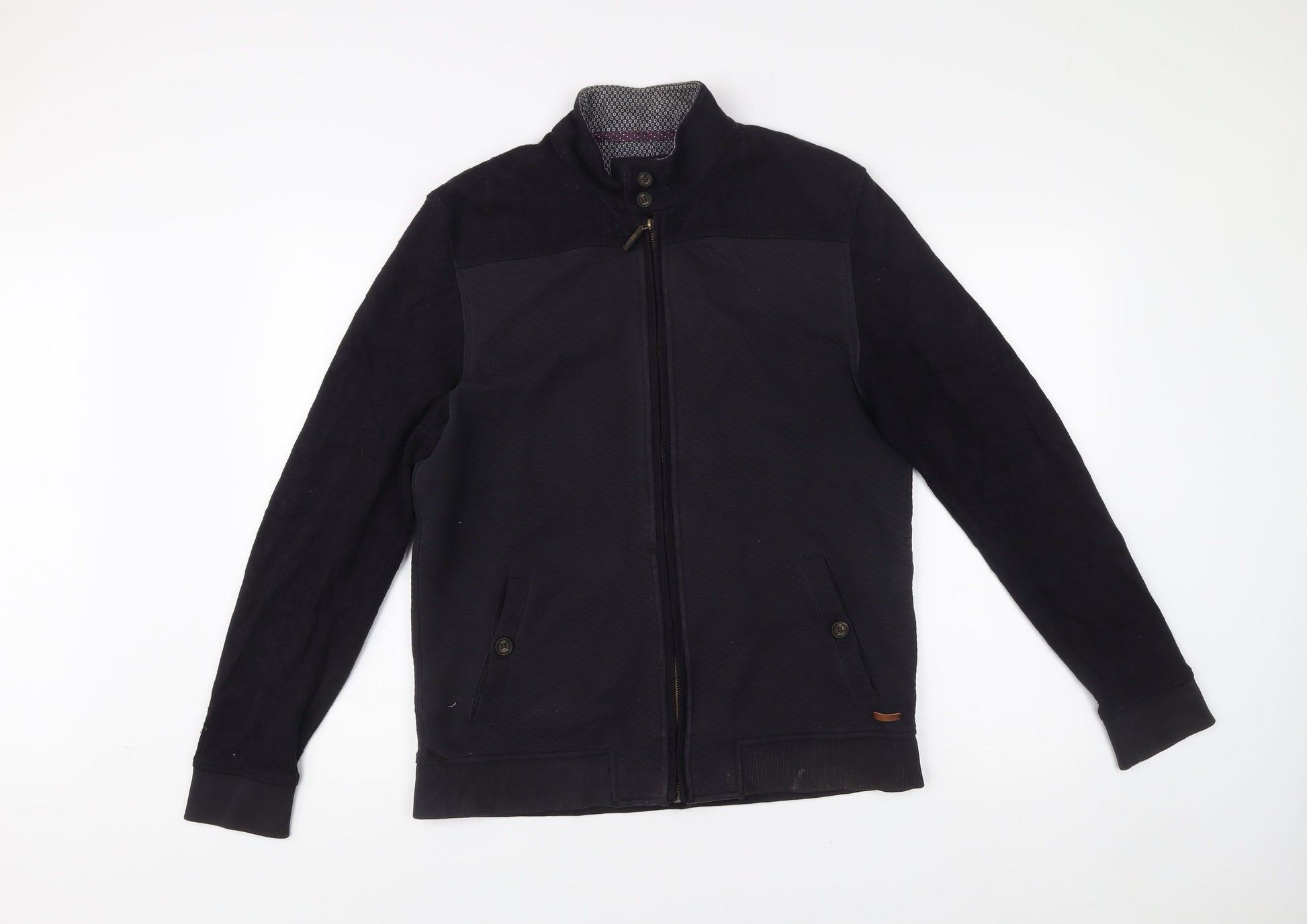 Ted Baker Men’s Black L Jacket Cotton Blend Full Zip Stand Collar