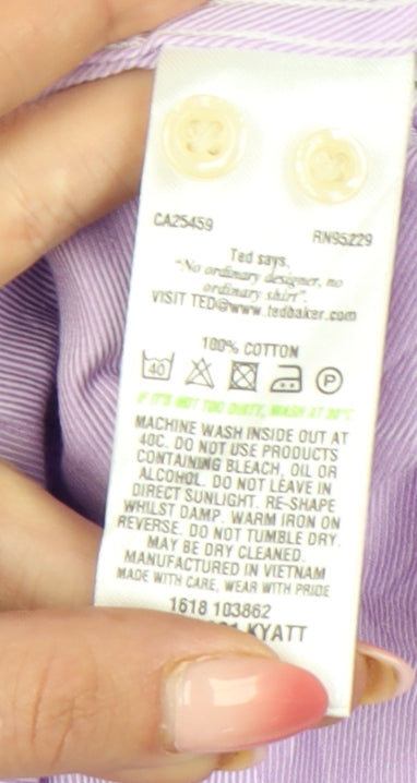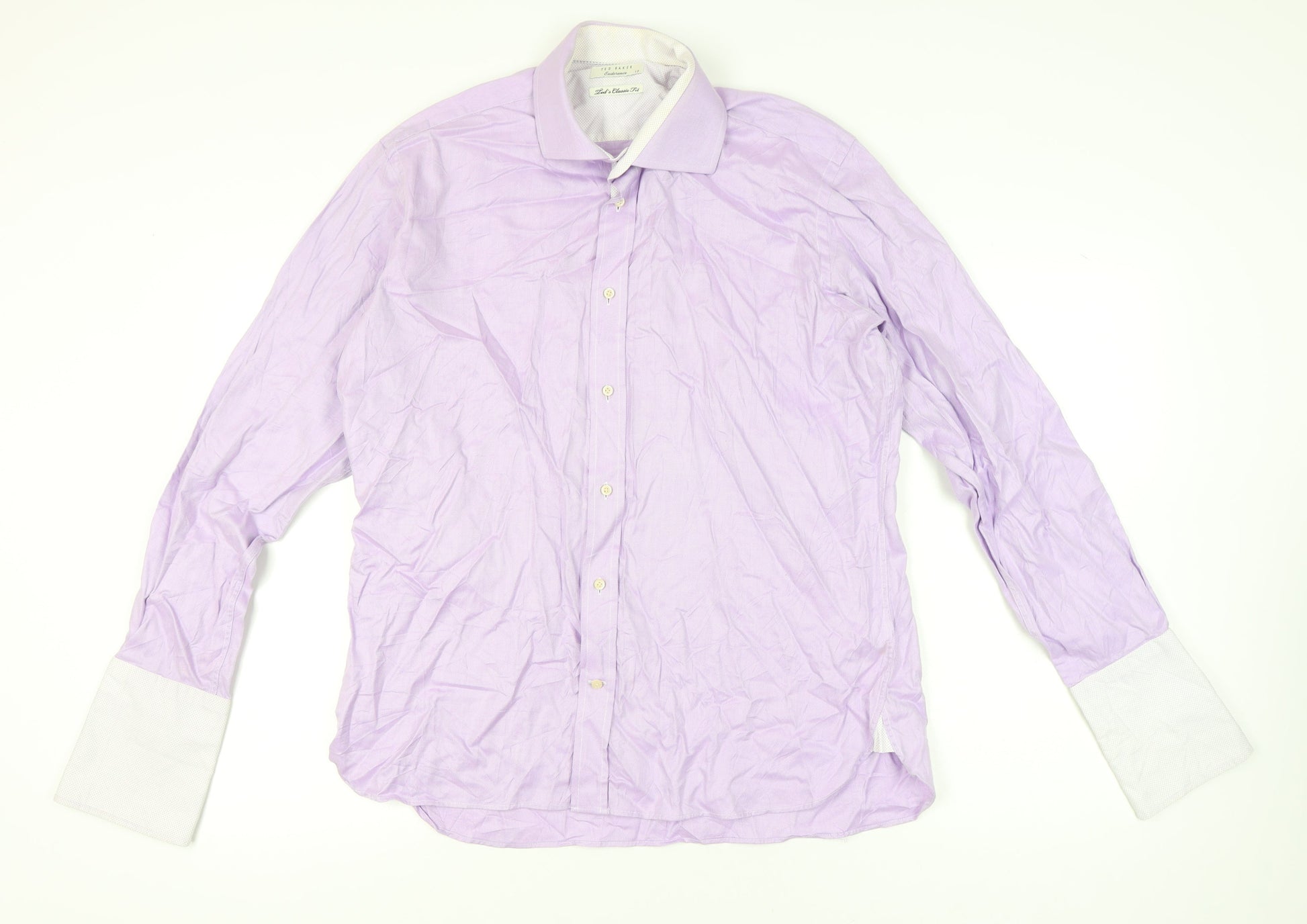 Ted Baker Men’s Purple Classic Fit Long Sleeve Cotton Dress Shirt 17 L