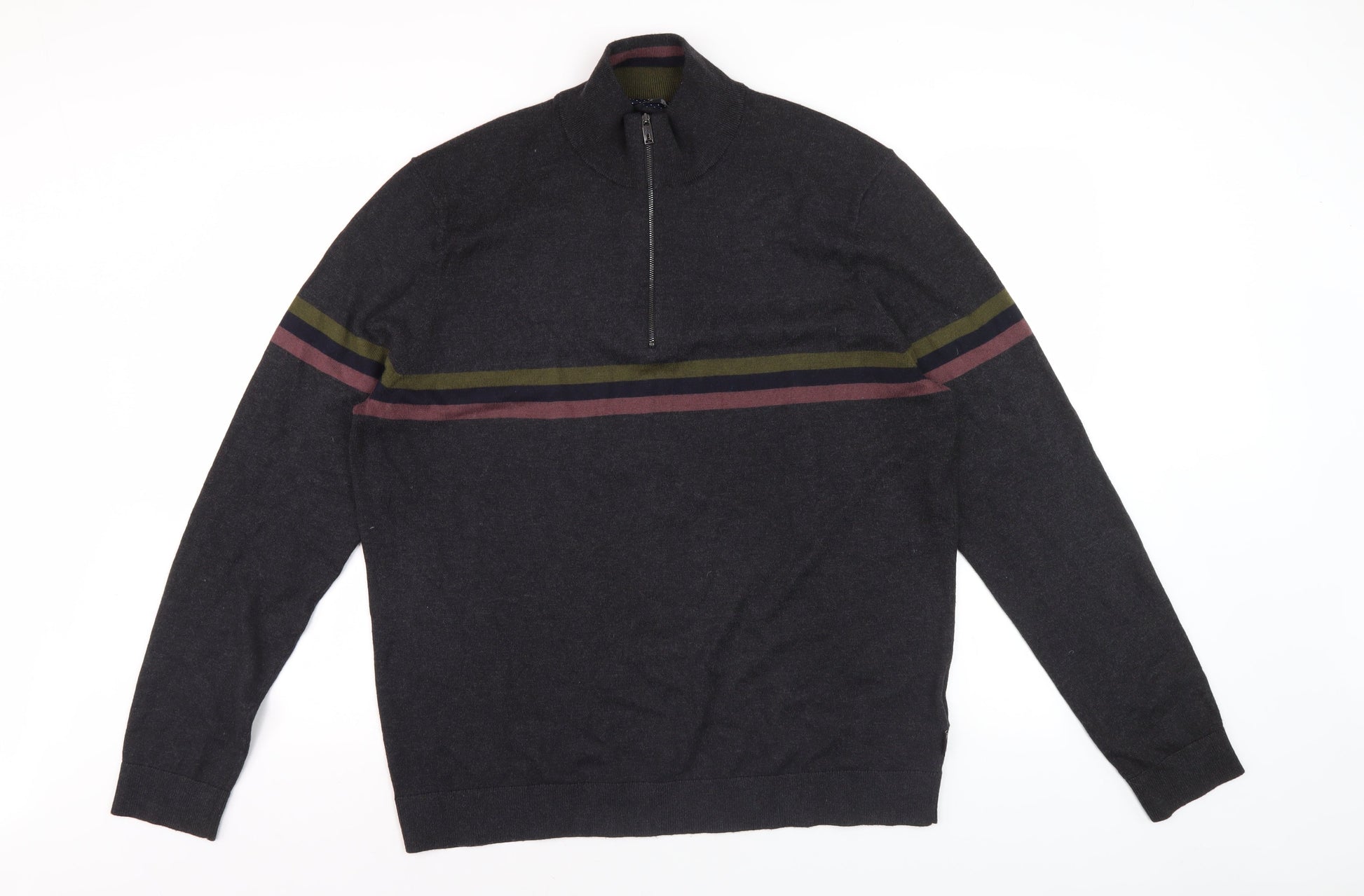 Ted Baker Men's Black 6XL Striped Full Zip Jumper