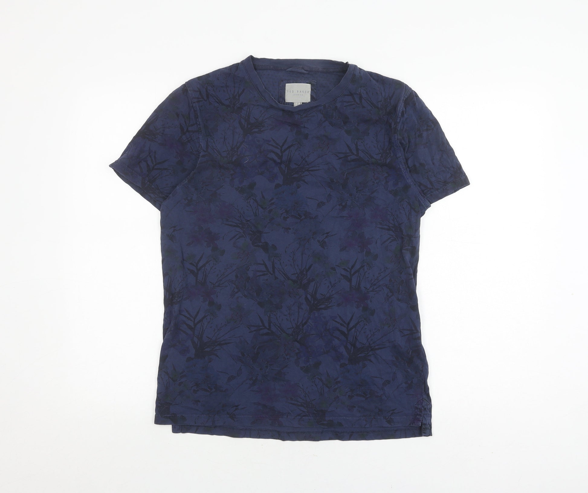 Ted Baker Men's Blue Floral Cotton T-Shirt, M