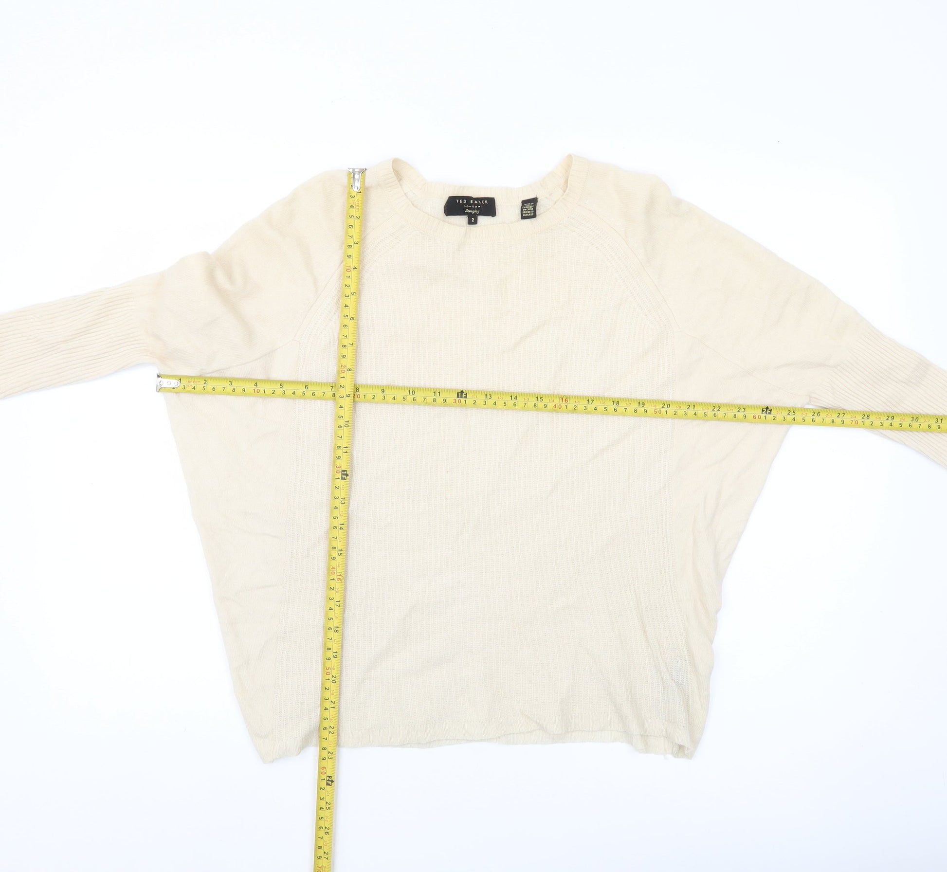 Ted Baker Women’s Ivory 100% Cashmere Crew Neck Jumper Size 10