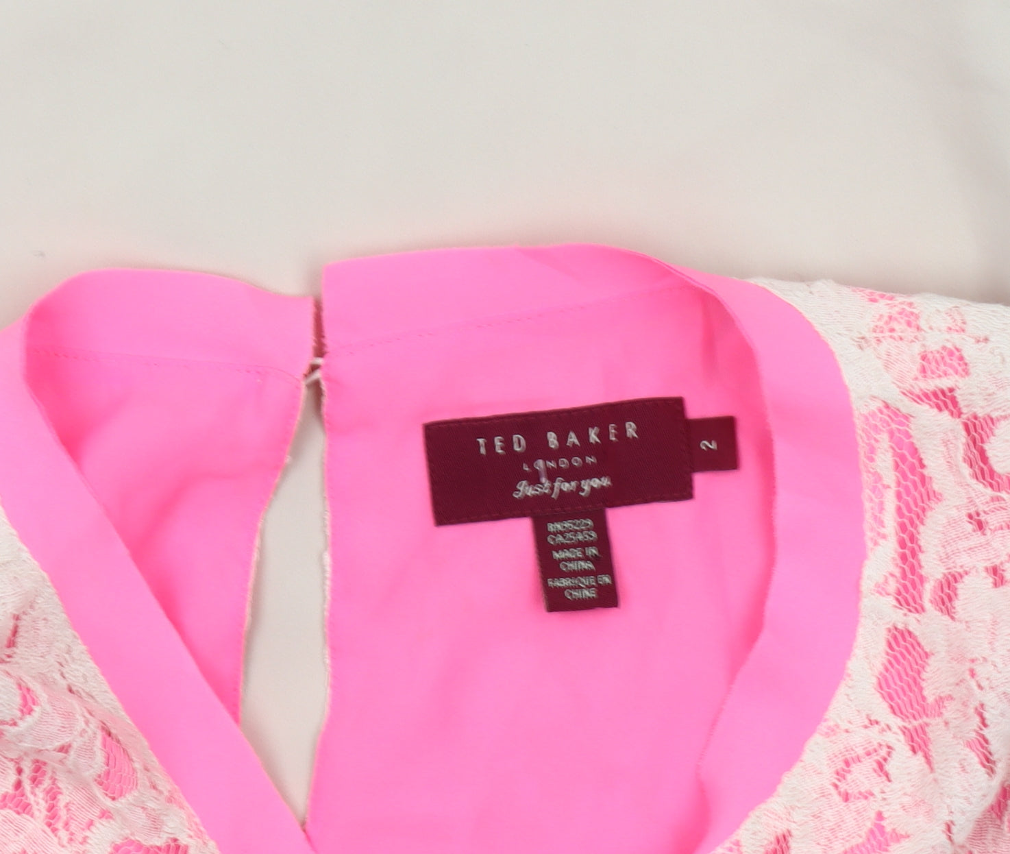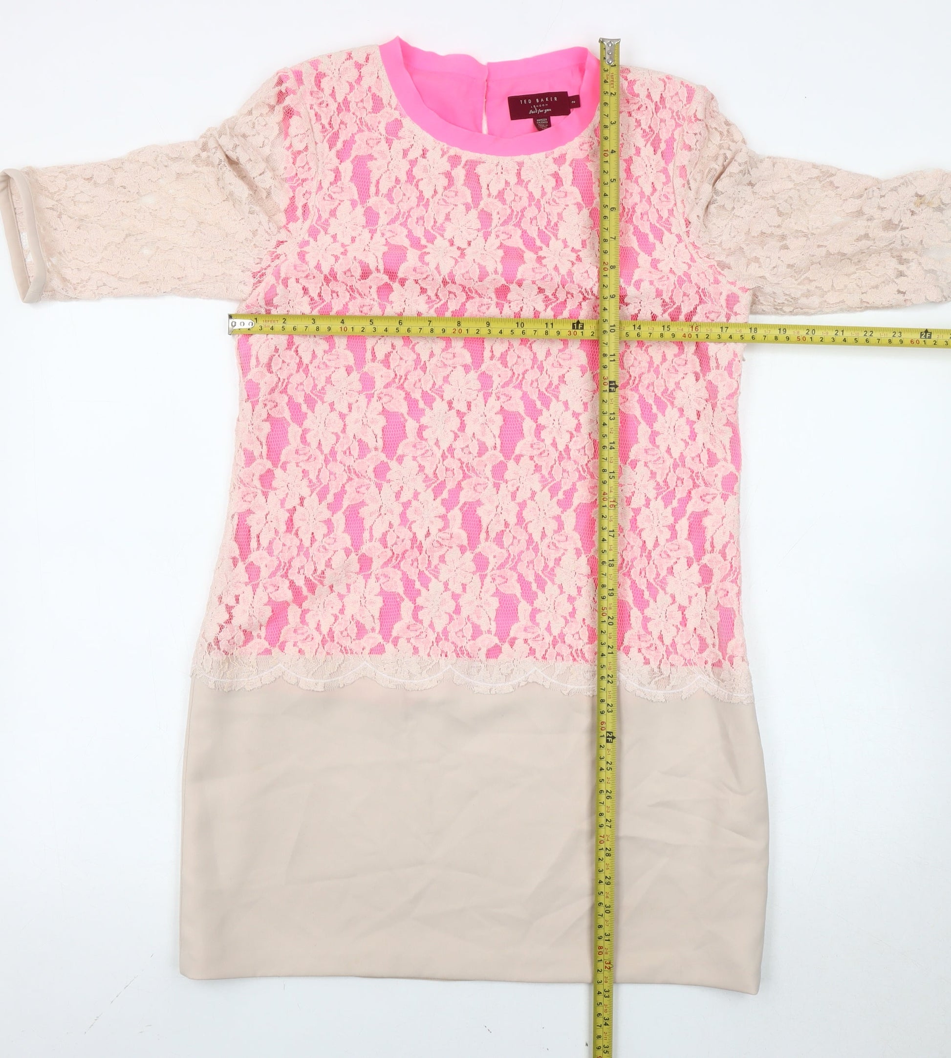 Ted Baker Women’s Pink Beige Lace Sheath Dress Size S Party/Cocktail