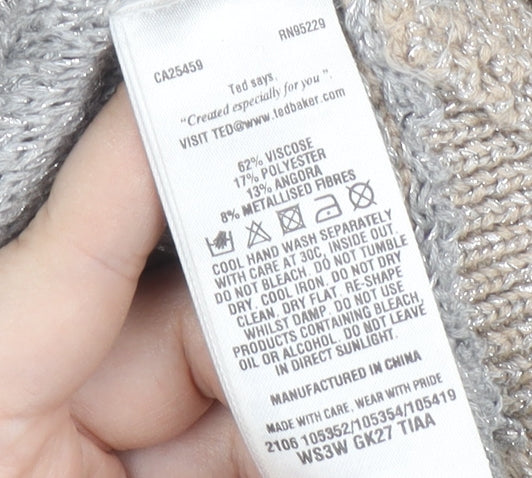 - Material Breakdown: 62% Viscose 17% Polyester 13% Angora 8% Metallic Fibre