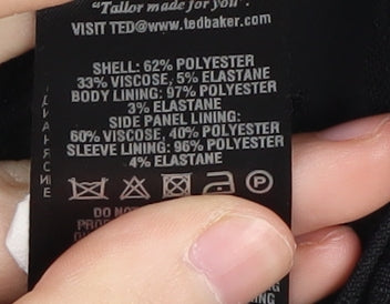 - Material Breakdown: 62% Polyester 33% Viscose 5% Elastane