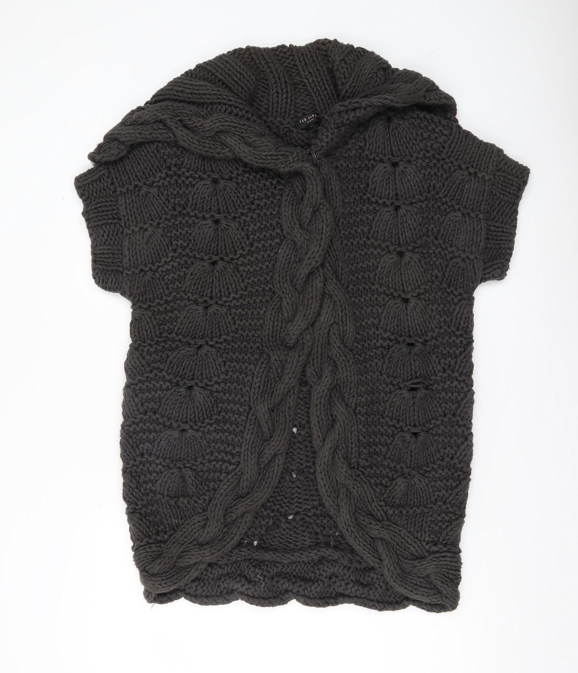Ted Baker Womens Black Size 12 Chunky Knit Cotton Shrug