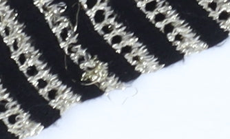 - Material Breakdown: Front: 64% Viscose 23% Polyester 13% Metallic Fibre; Sleeves: 64% Viscose 23% Polyester 13% Metallic Fibre; Back: 65% Polyester 35% Metallic Fibre; Rib Trim: 77% Viscose 20% Nylon 3% Elastane