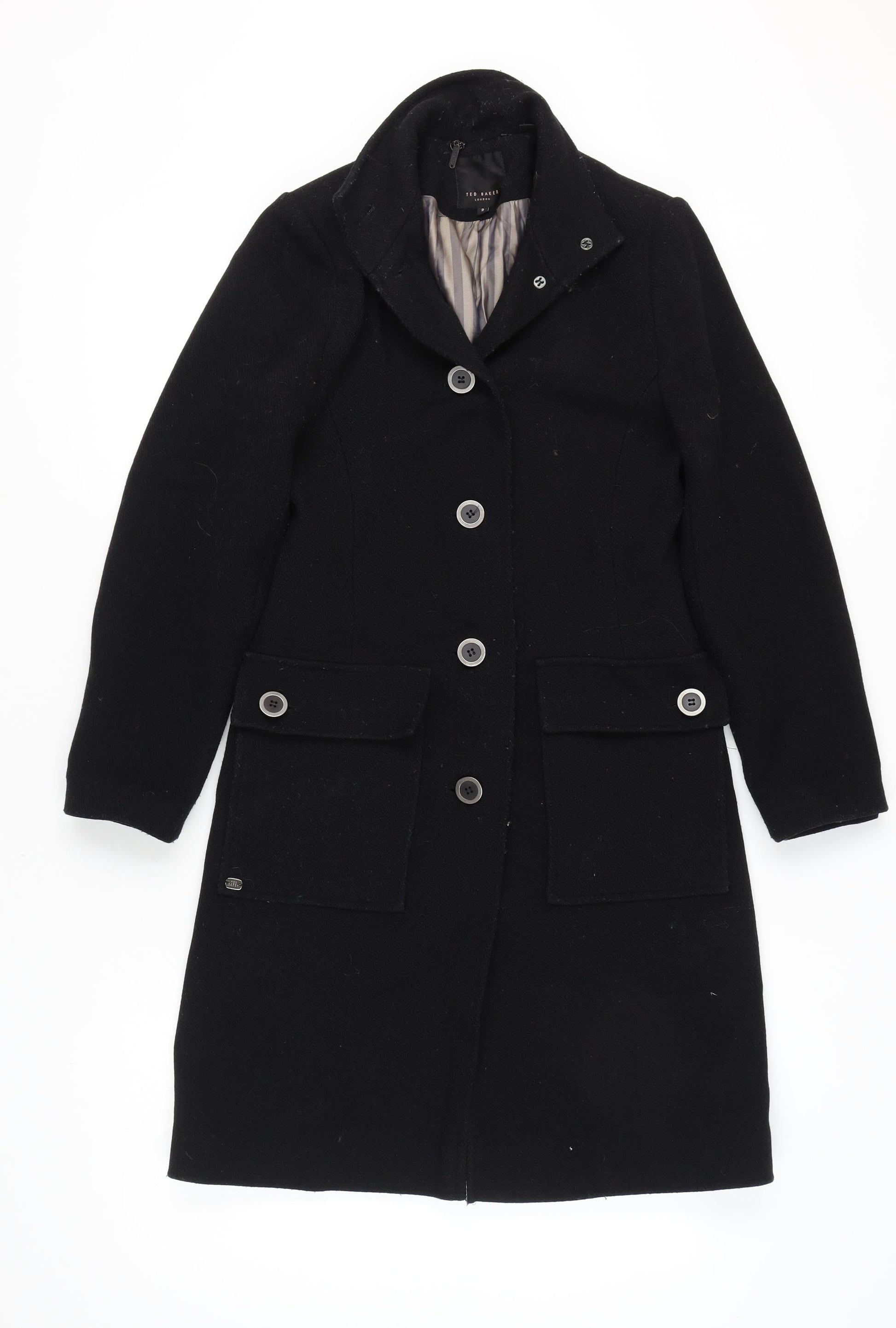 Ted Baker Women's Black Wool Long Overcoat Size 10
