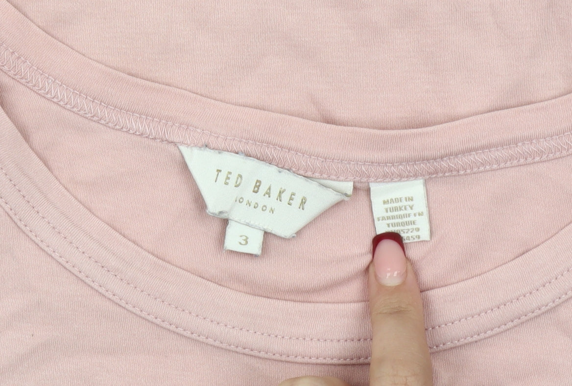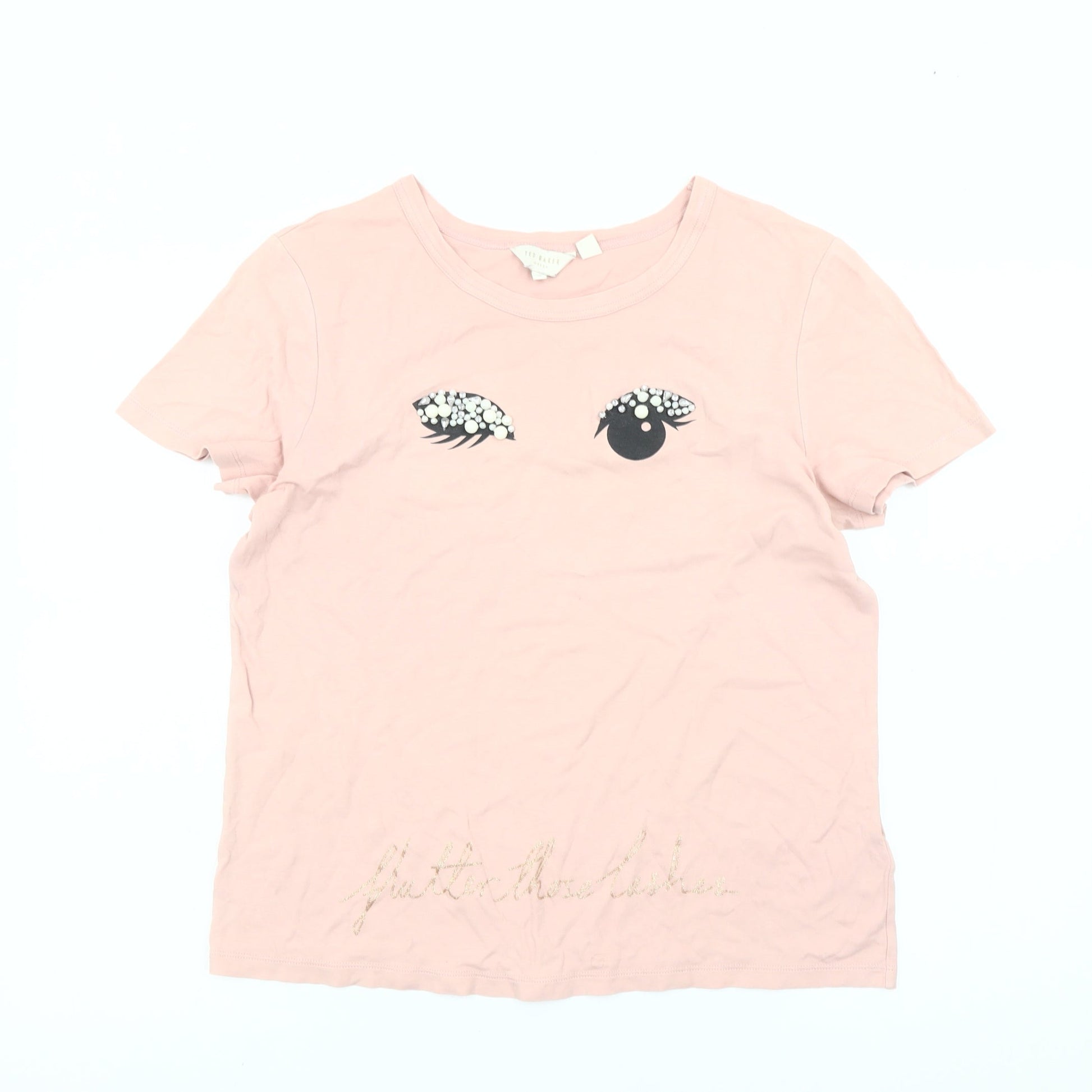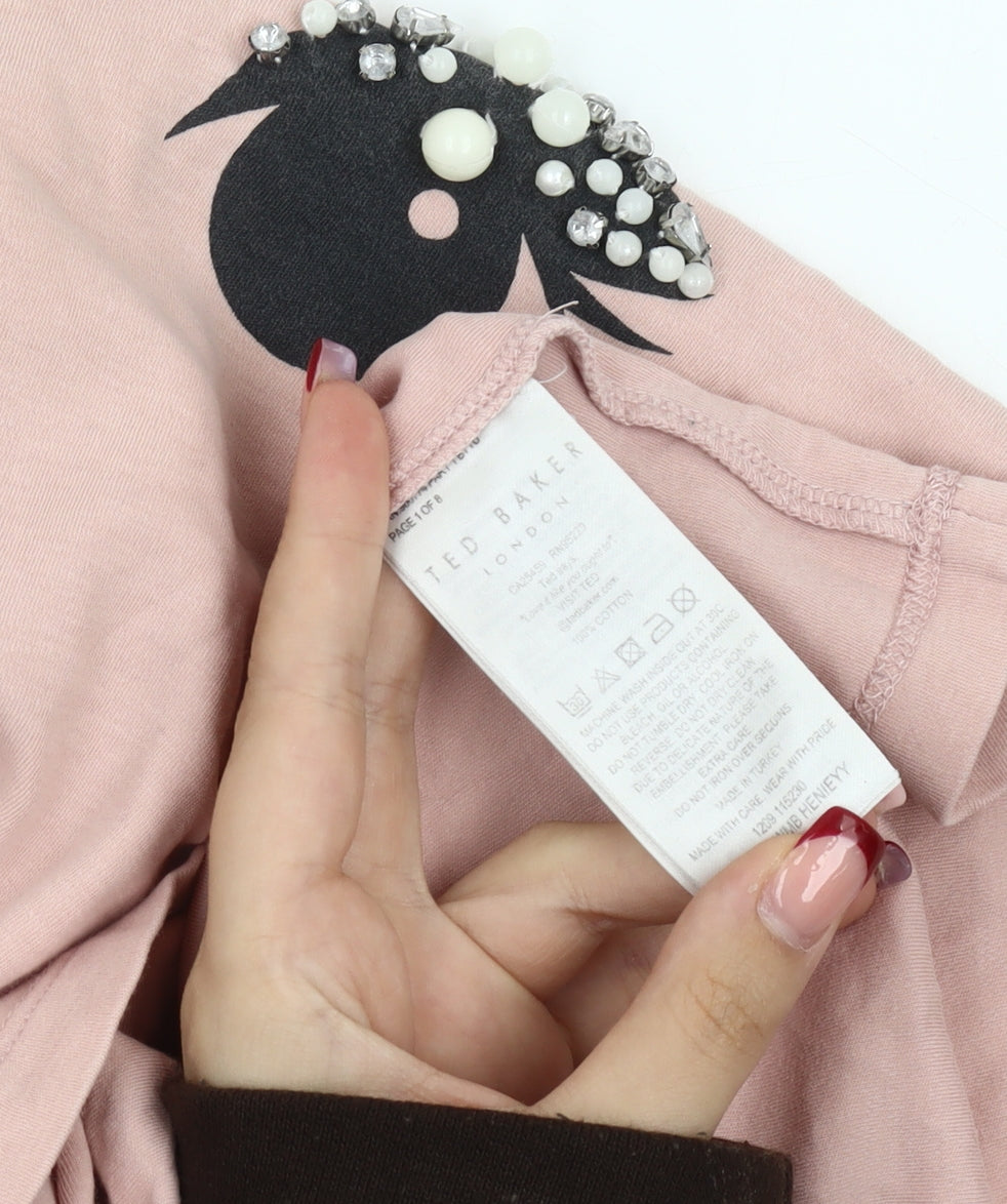 Ted Baker Womens Pink Beaded Graphic T-Shirt Size M Short Sleeve