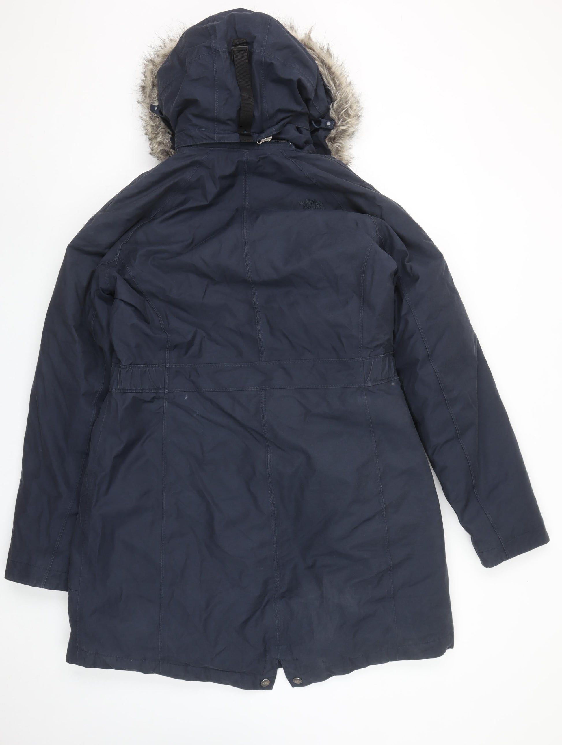 - Keywords: The North Face women parka coat blue faux fur hooded down insulated winter jacket twill regular fit large