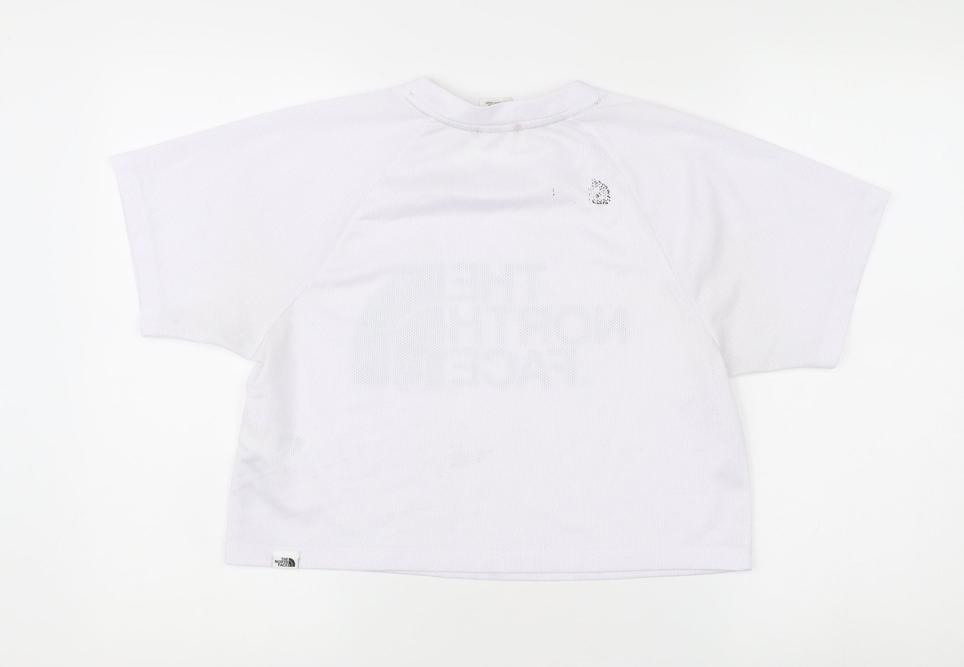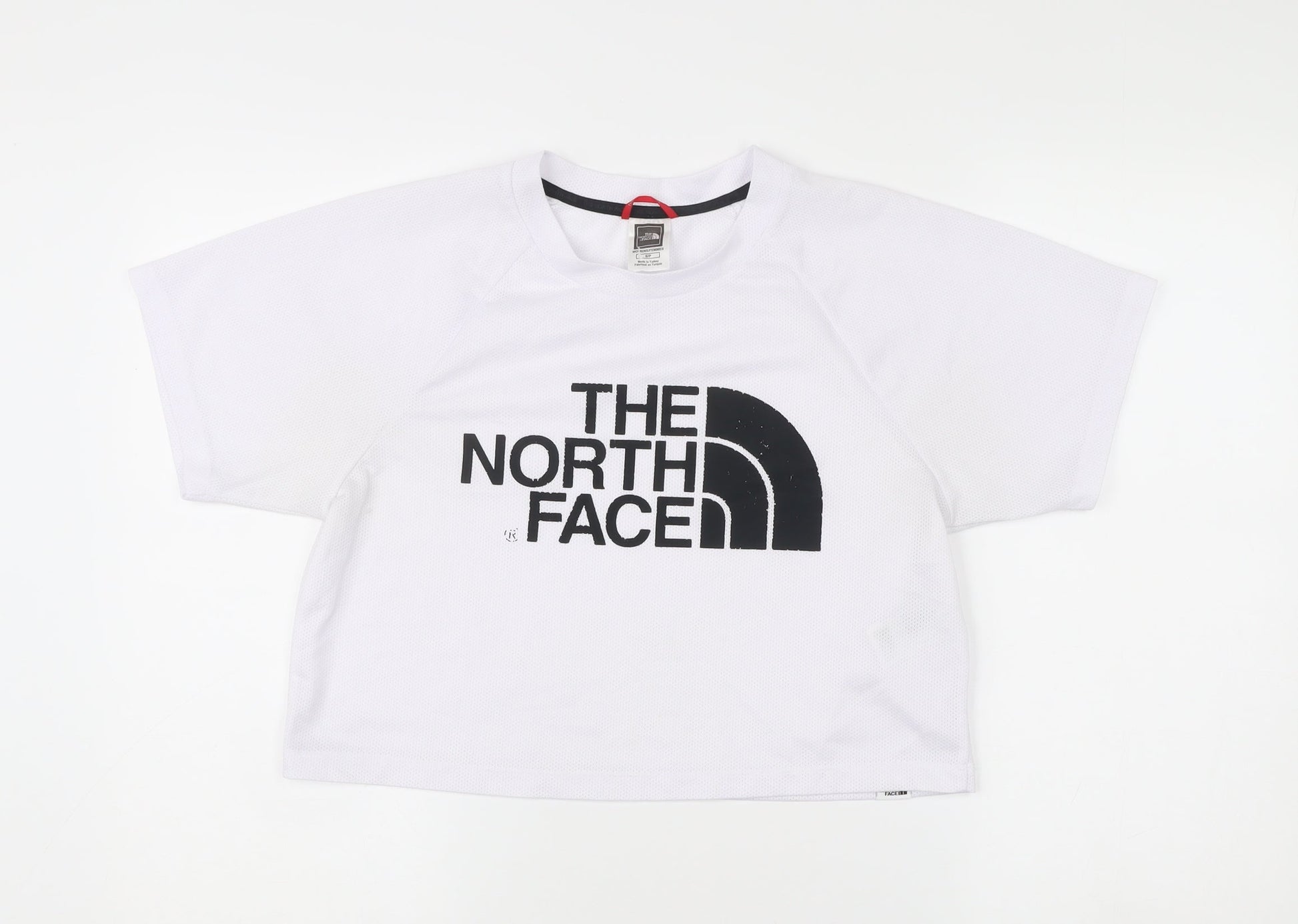 The North Face Womens White Cropped T-Shirt S Relaxed Fit Logo Sportswear