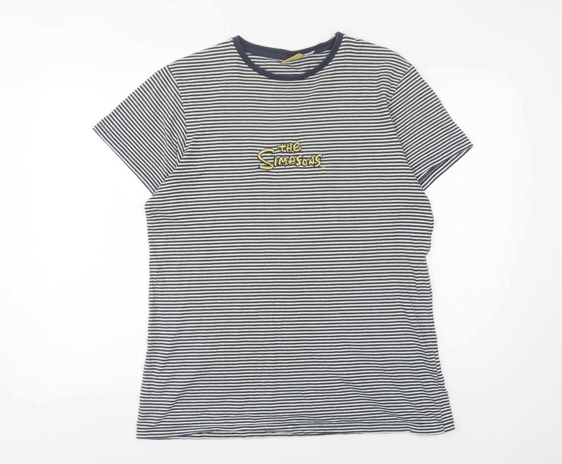 The Simpsons Men's Large Striped Cartoon T-Shirt