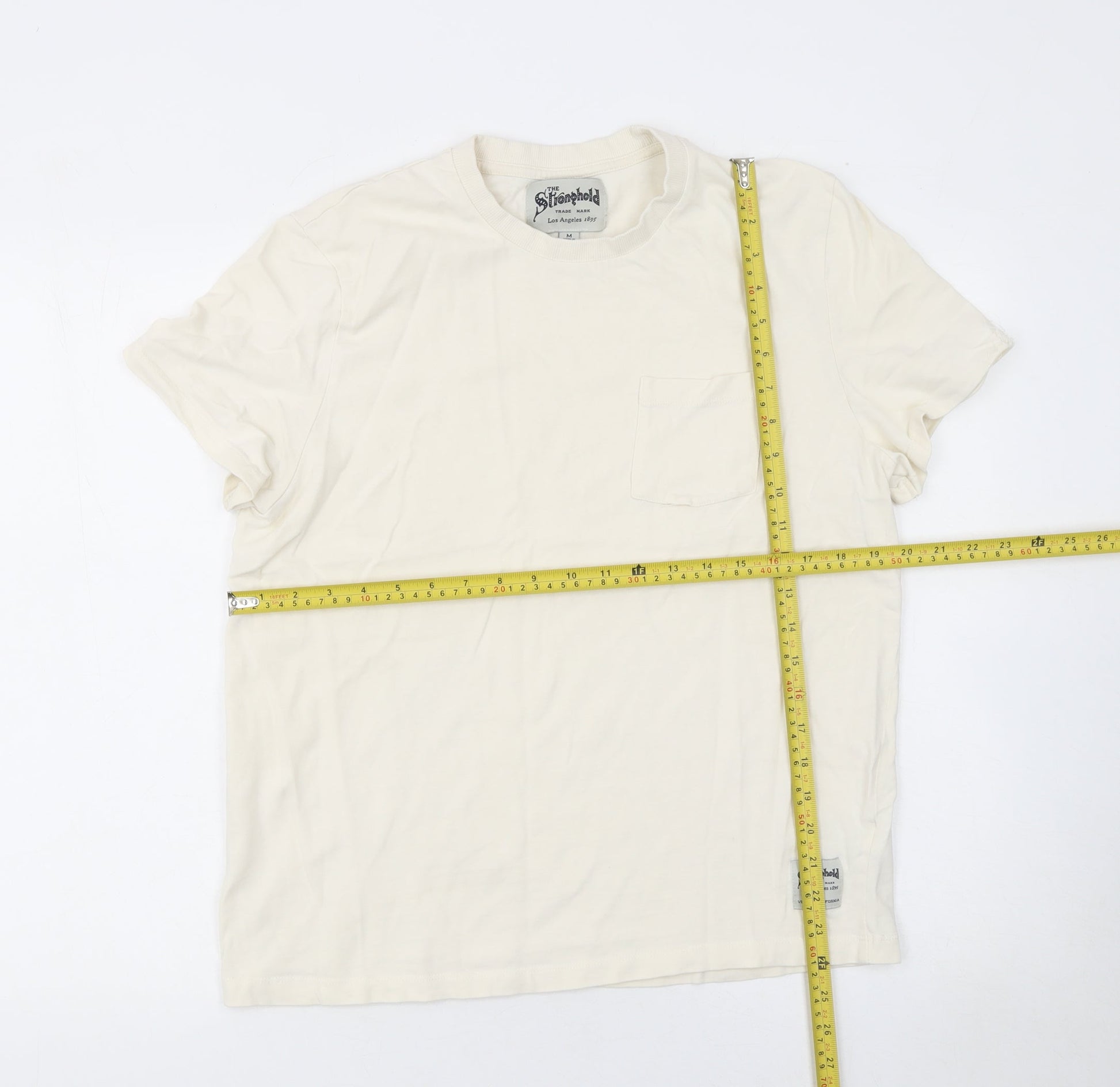 The Stronghold Men's Ivory Cotton Short Sleeve Crew Neck T-Shirt M