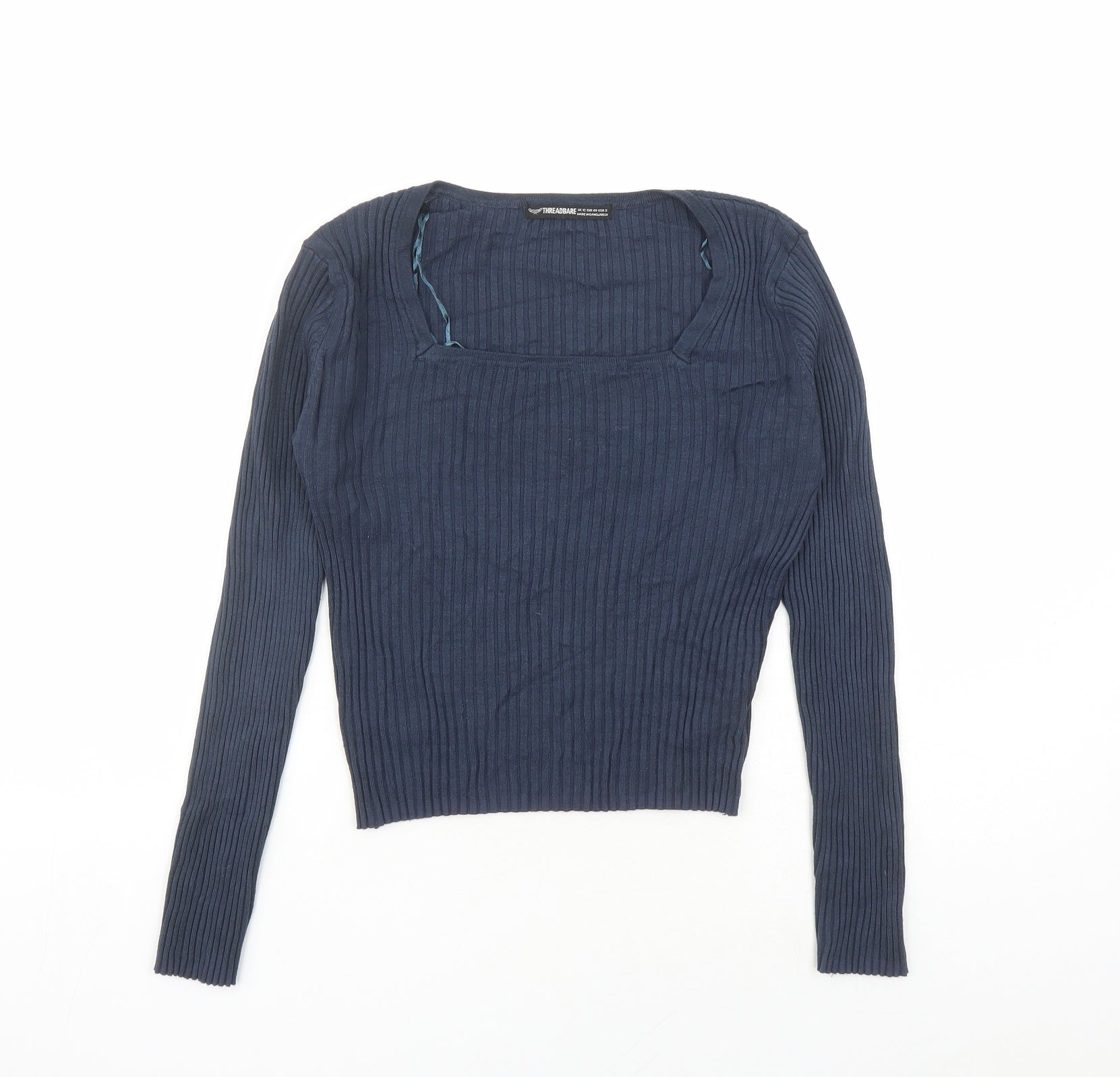 Threadbare Womens Blue Viscose Cropped T-Shirt Size 12 Square Neck