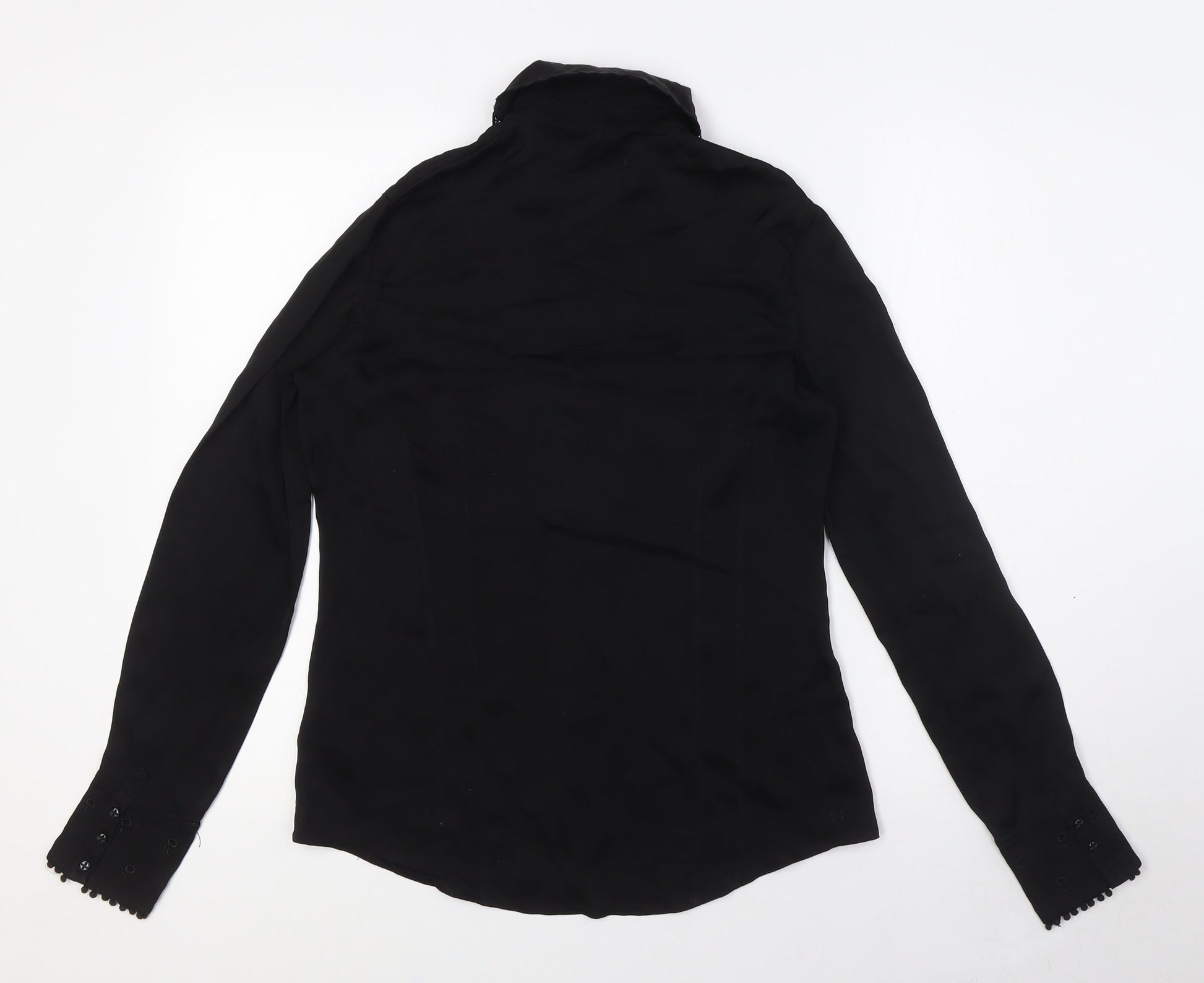 Ti MO Womens Black Silk Basic Button-Up Size M Collared - Embellished Collar