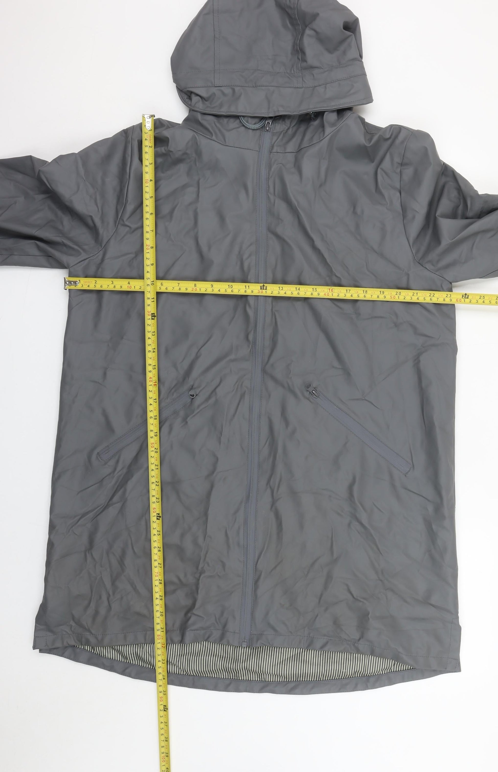 Tif Tiffy Women's Grey Long Hooded Waterproof Rain Coat L