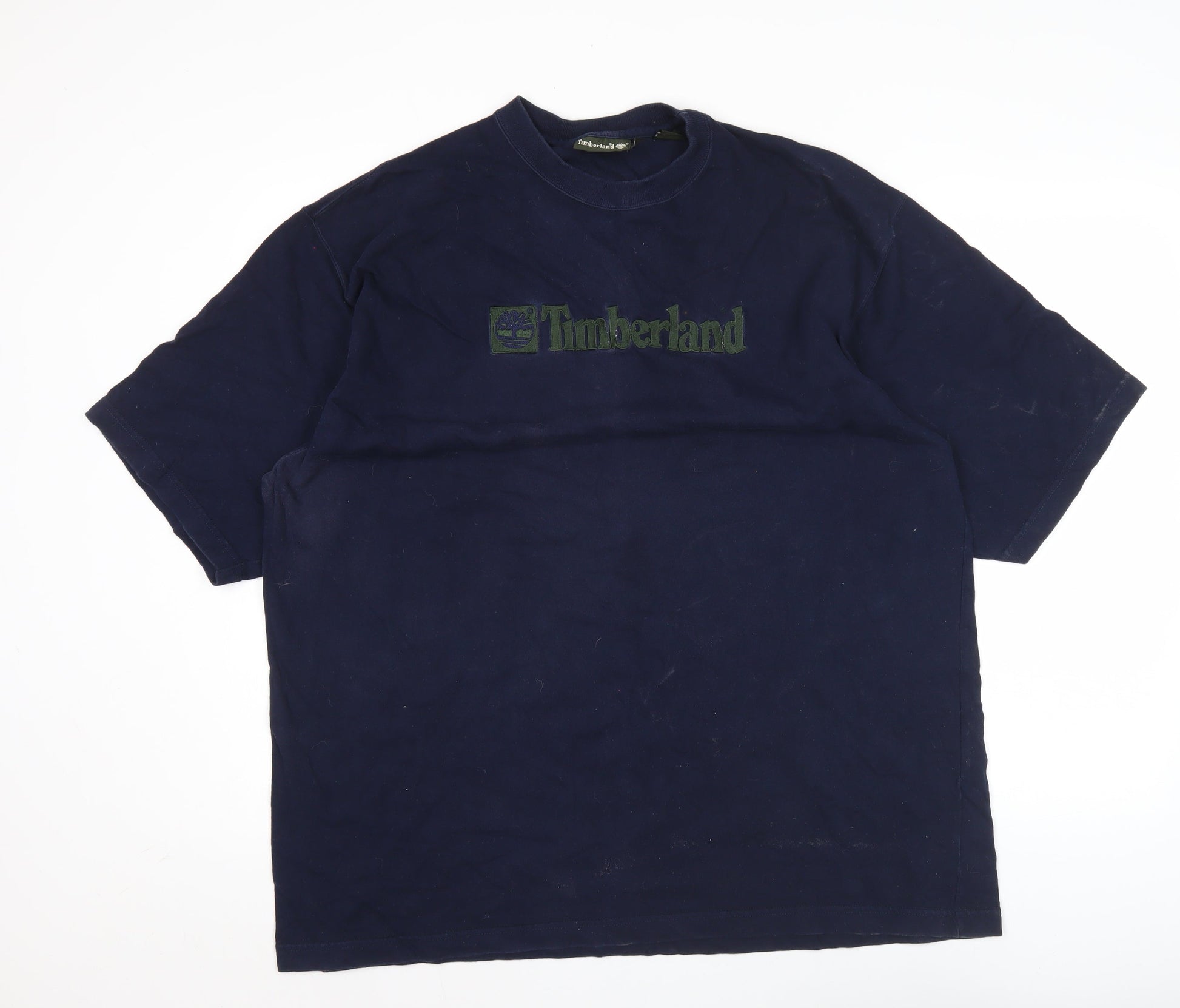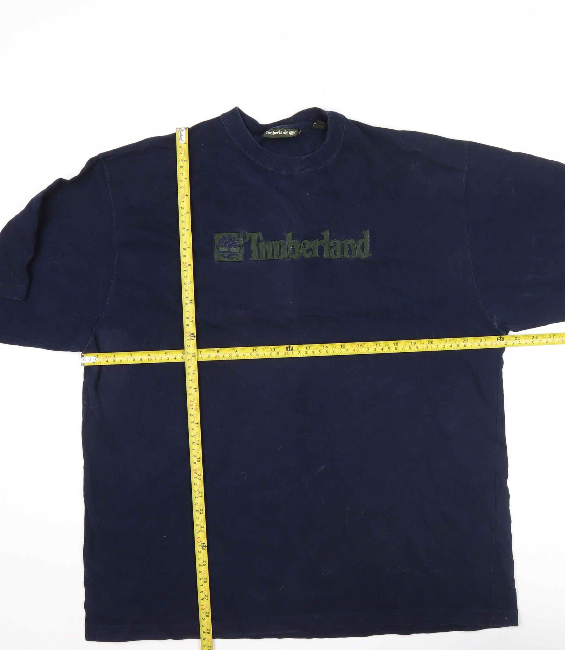 Timberland Men’s Blue Cotton Logo T-Shirt L Vintage Short Sleeve