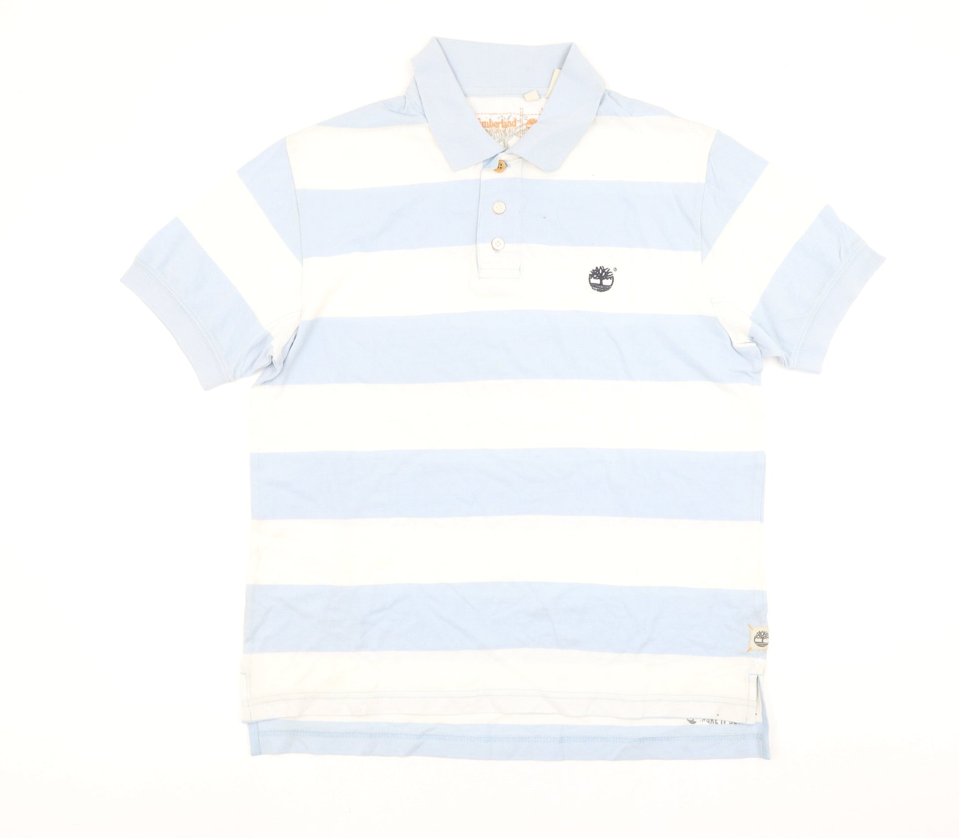Timberland Men's Blue Striped Cotton Polo Shirt Size M