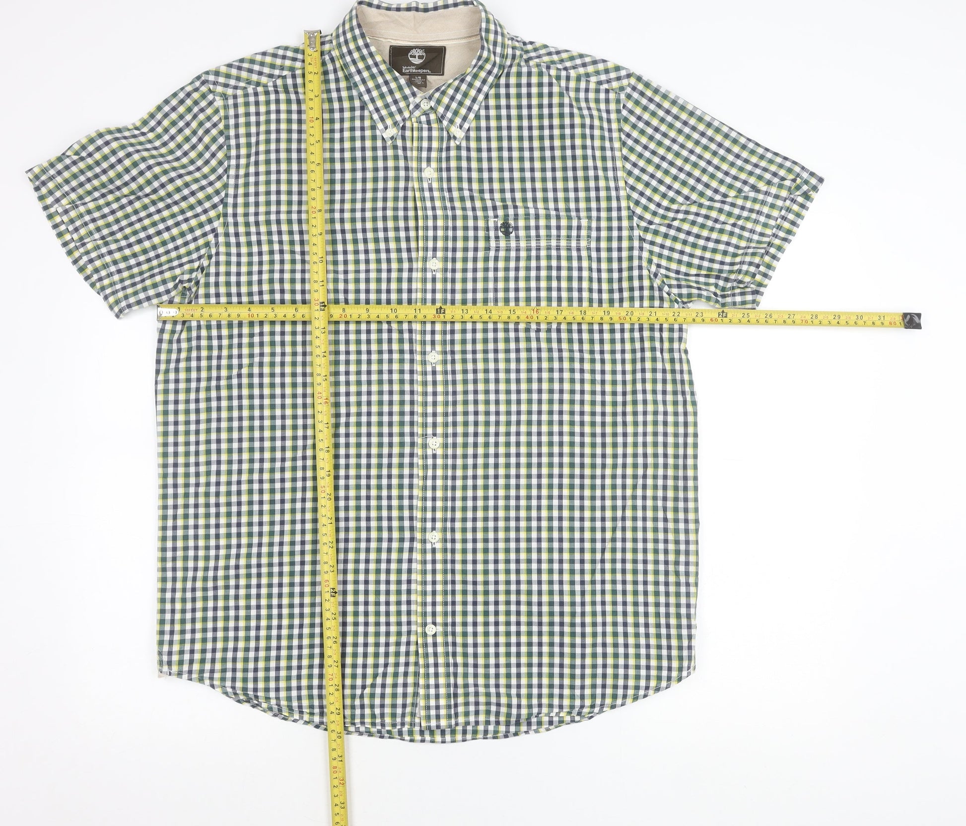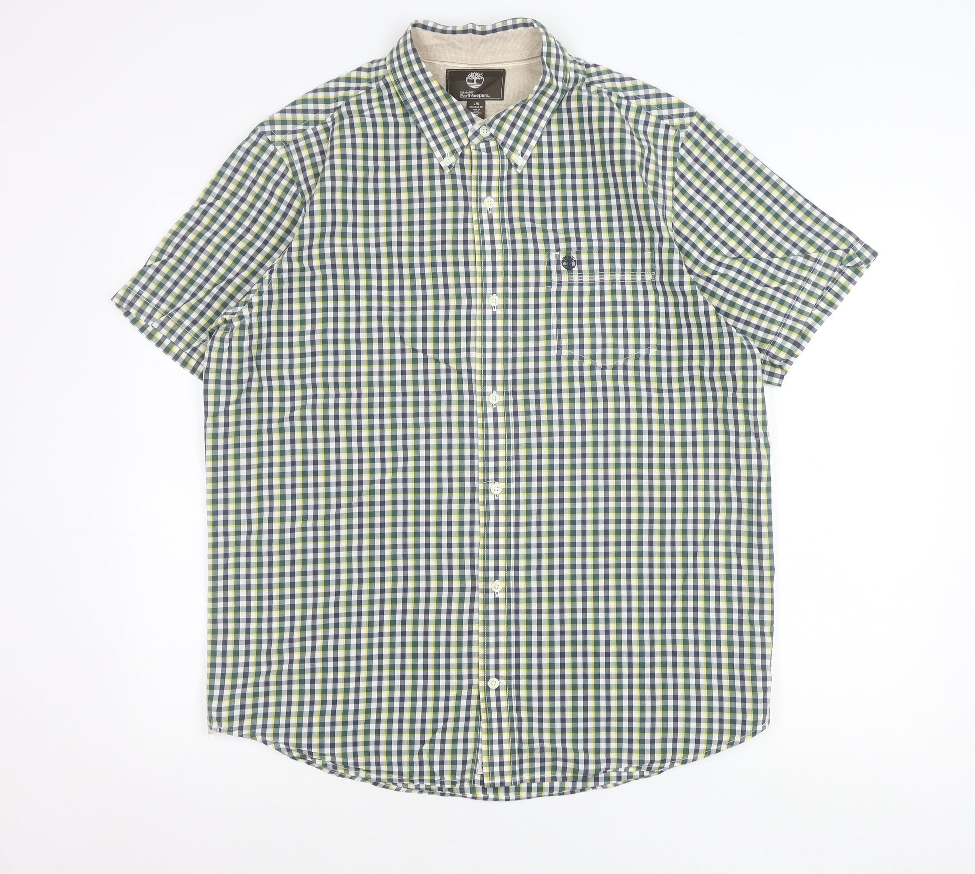 Timberland Mens Green Checked Short Sleeve Regular Fit Shirt L