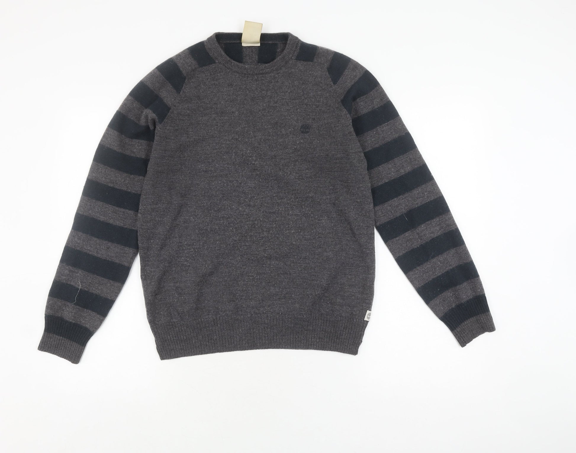Timberland Men's Grey Slim Fit Striped Pullover Jumper L