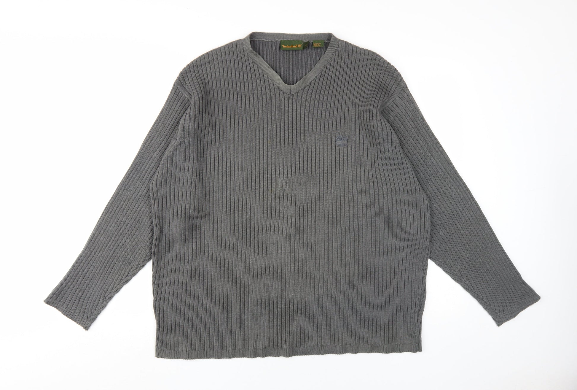 Timberland Men's Grey V-Neck Knit Pullover - Size L