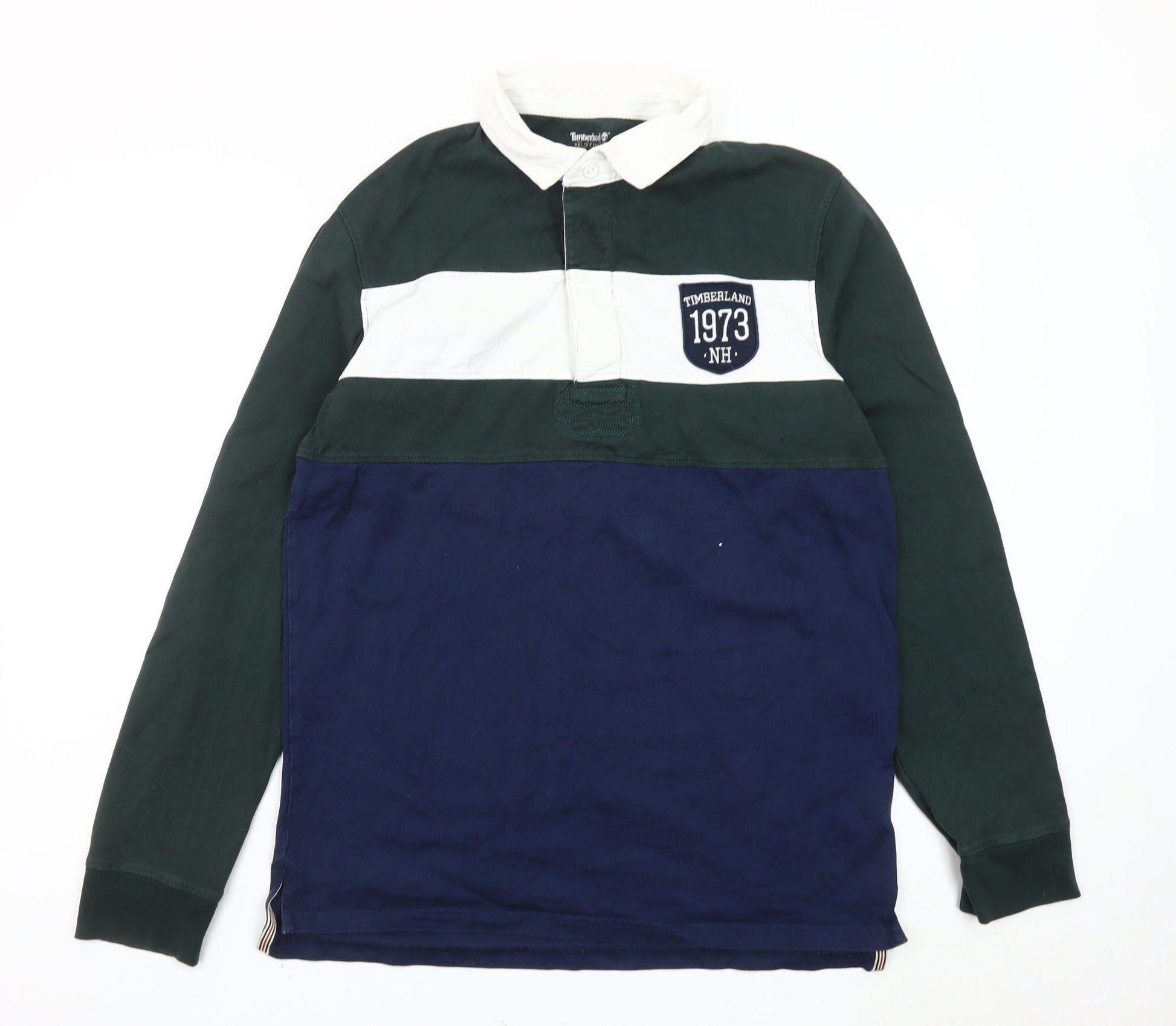 Timberland Men's Slim Fit Rugby Polo Green Blue White L Long Sleeve