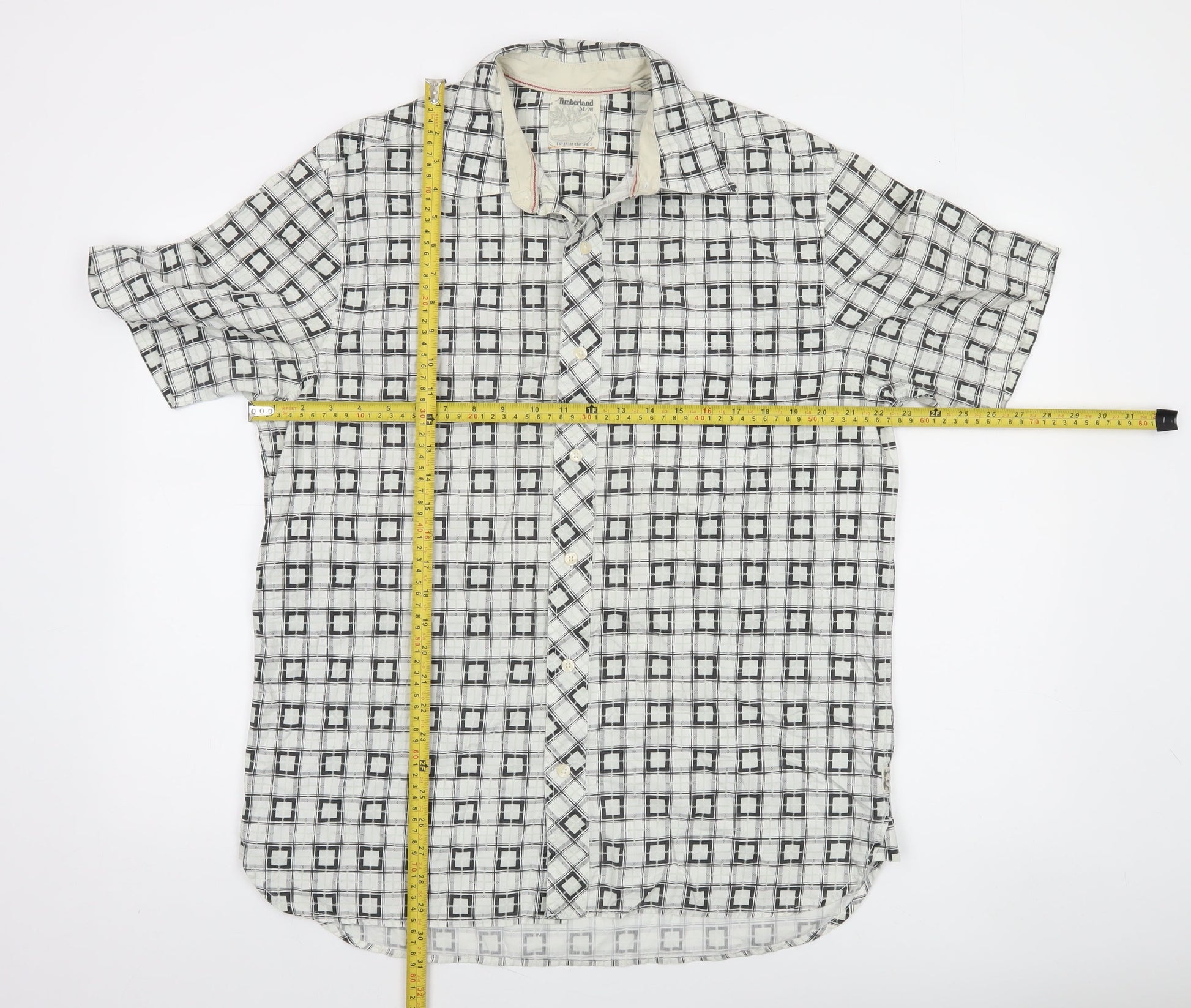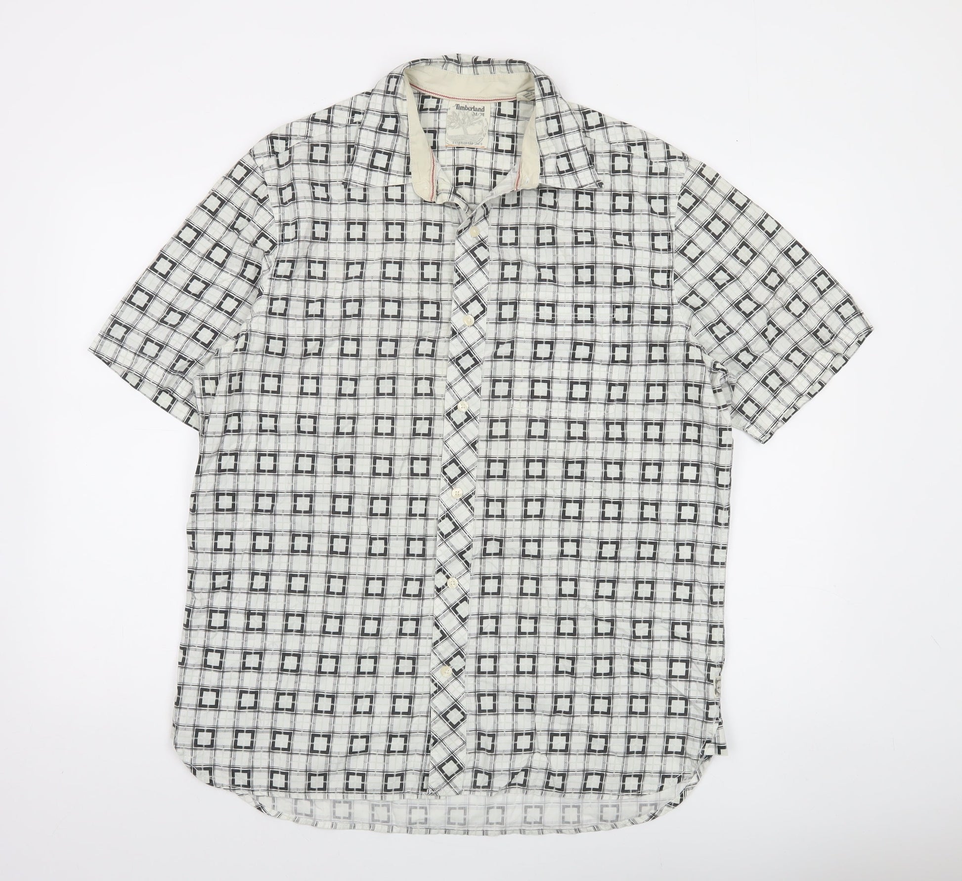 Timberland Men's White Checked Short Sleeve Button-Up Shirt M