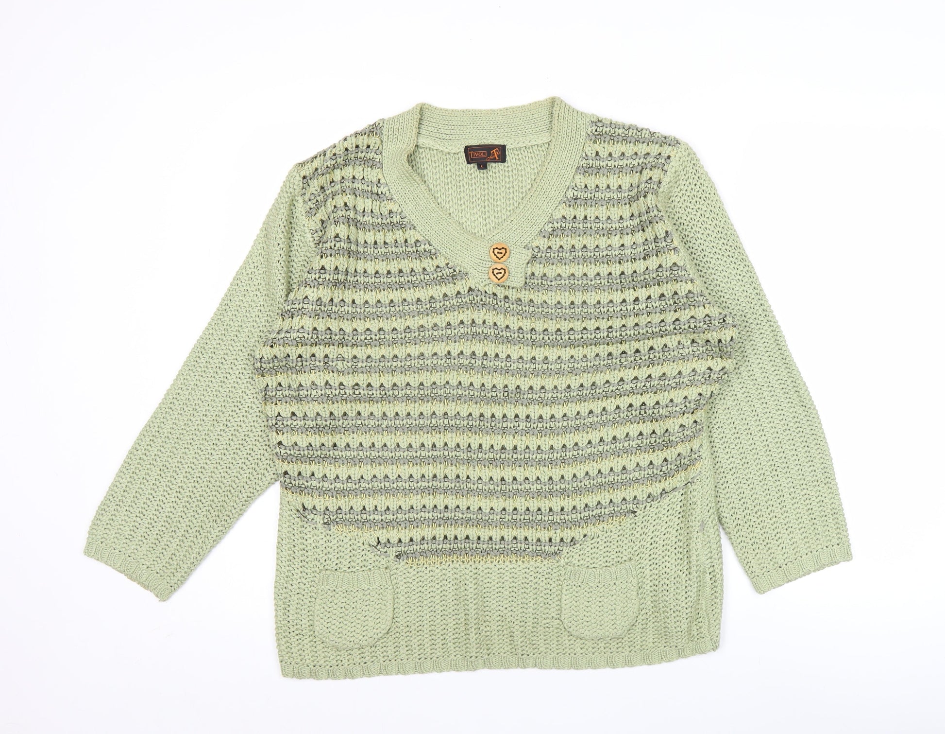 Tivoli Womens Green L Chunky Knit V-Neck Pullover Jumper
