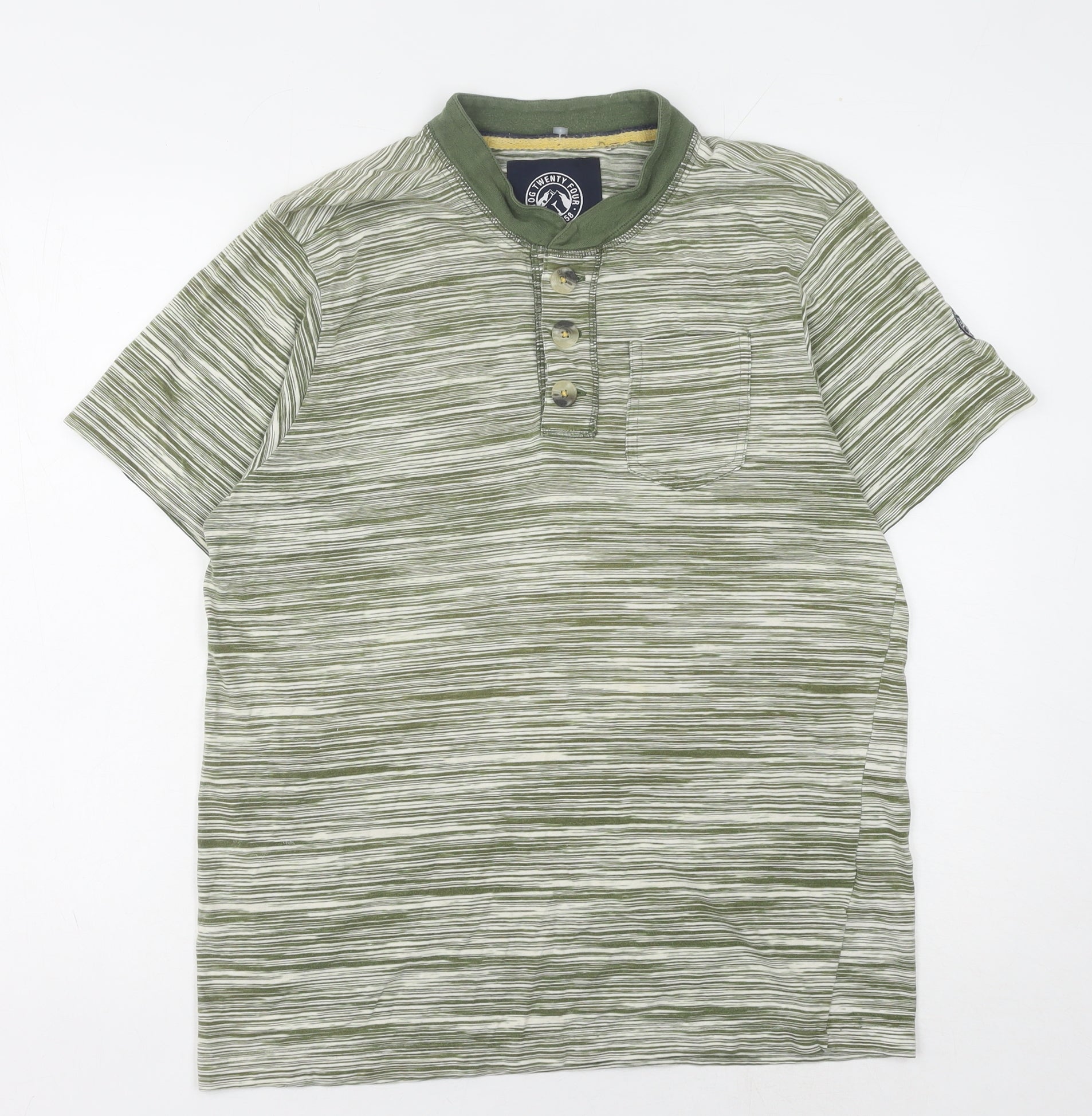 Tog Twenty Four Men's Green Striped Henley T-Shirt M
