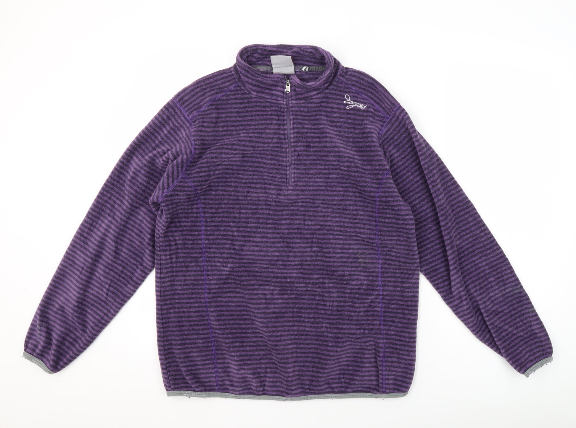 TOG24 Women's Purple Striped Henley Sweatshirt - Size 14