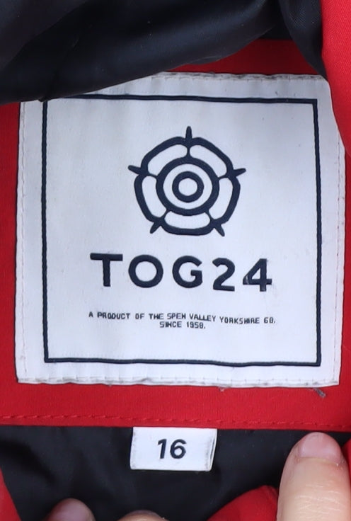 TOG24 Women's Red Puffer Jacket Size 16 with Fur Hood