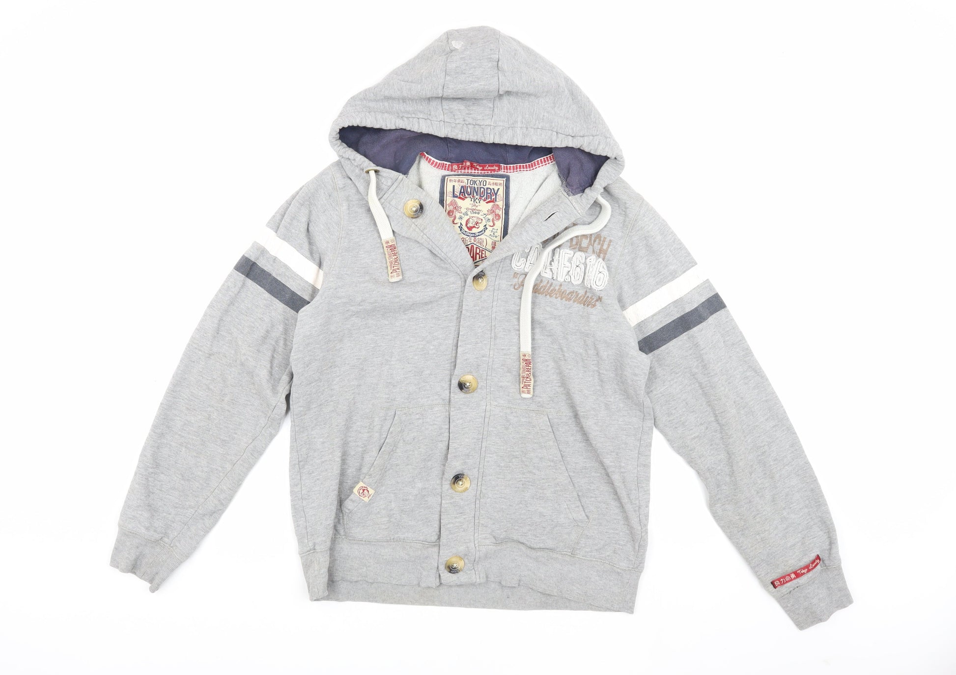 Tokyo Laundry Grey Hooded Jacket, M - Men's Cotton Casual