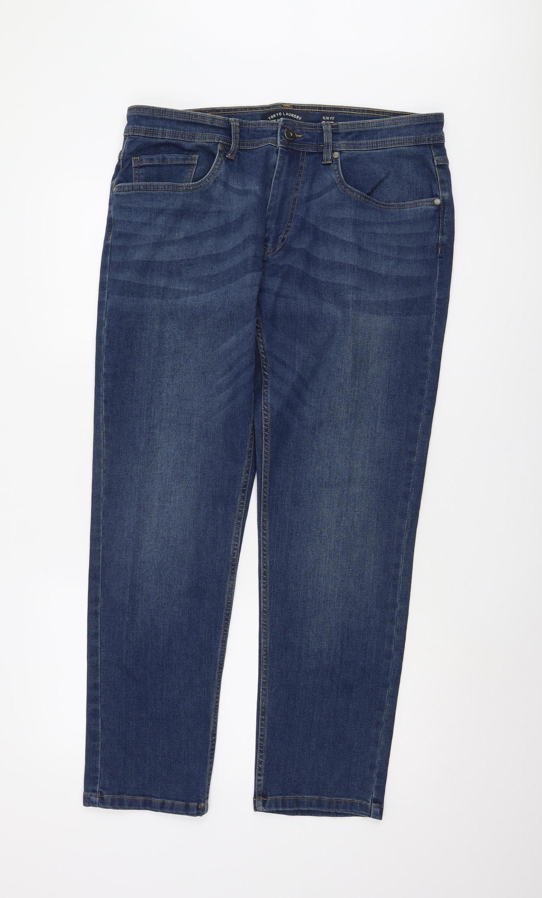 Tokyo Laundry Men's Blue Slim Fit Straight Jeans 36