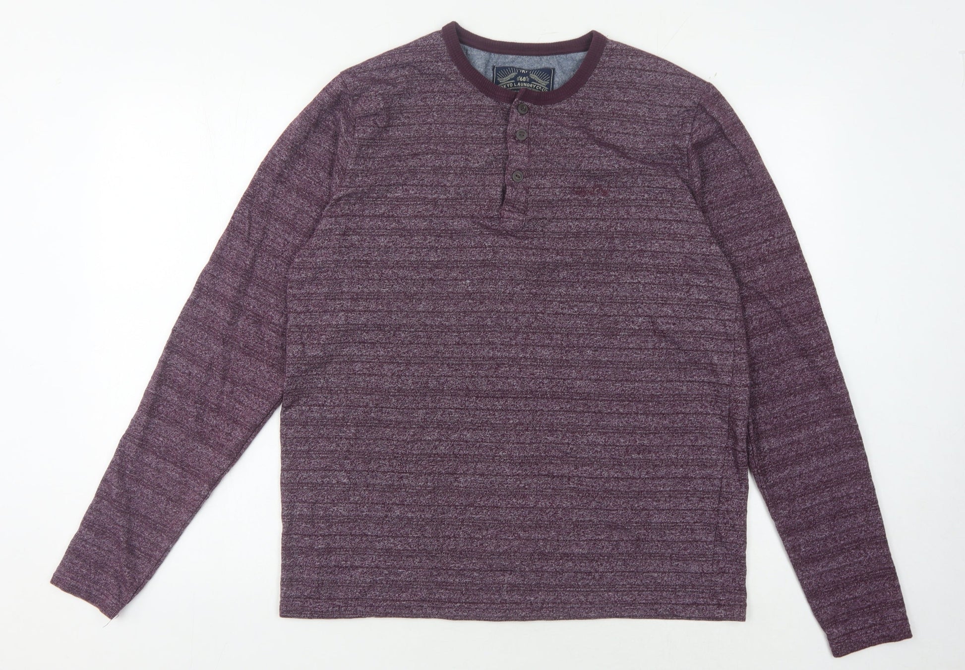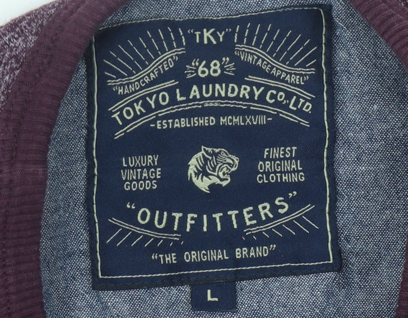 Tokyo Laundry Men's Purple Striped Henley T-Shirt L