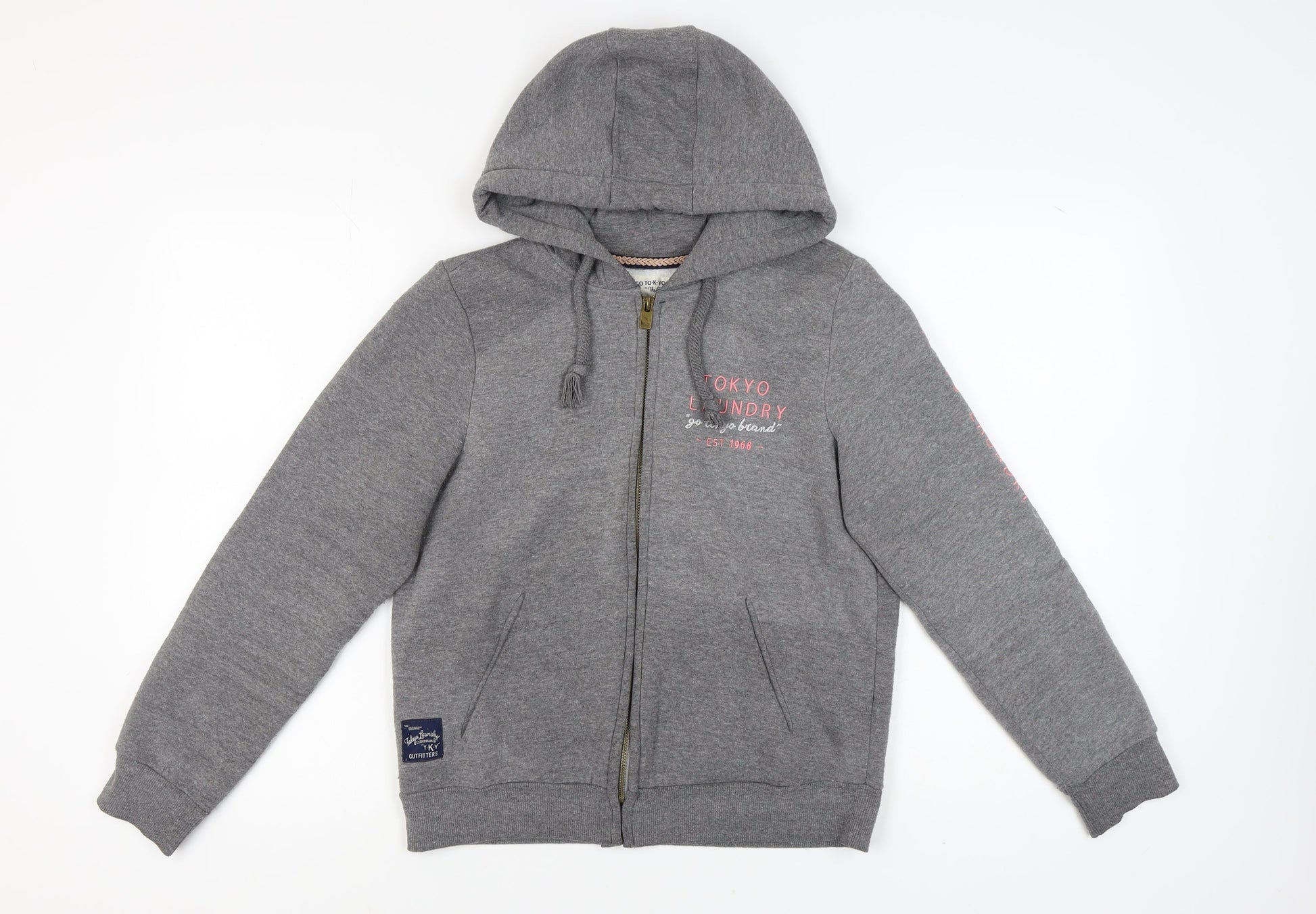 Tokyo Laundry Women's Grey Full Zip Hoodie, S, Logo Accent