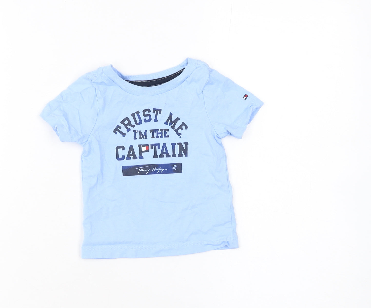 Tommy Hilfiger Blue Nautical Graphic Baby T-Shirt 3-6M Cotton Crew Neck
