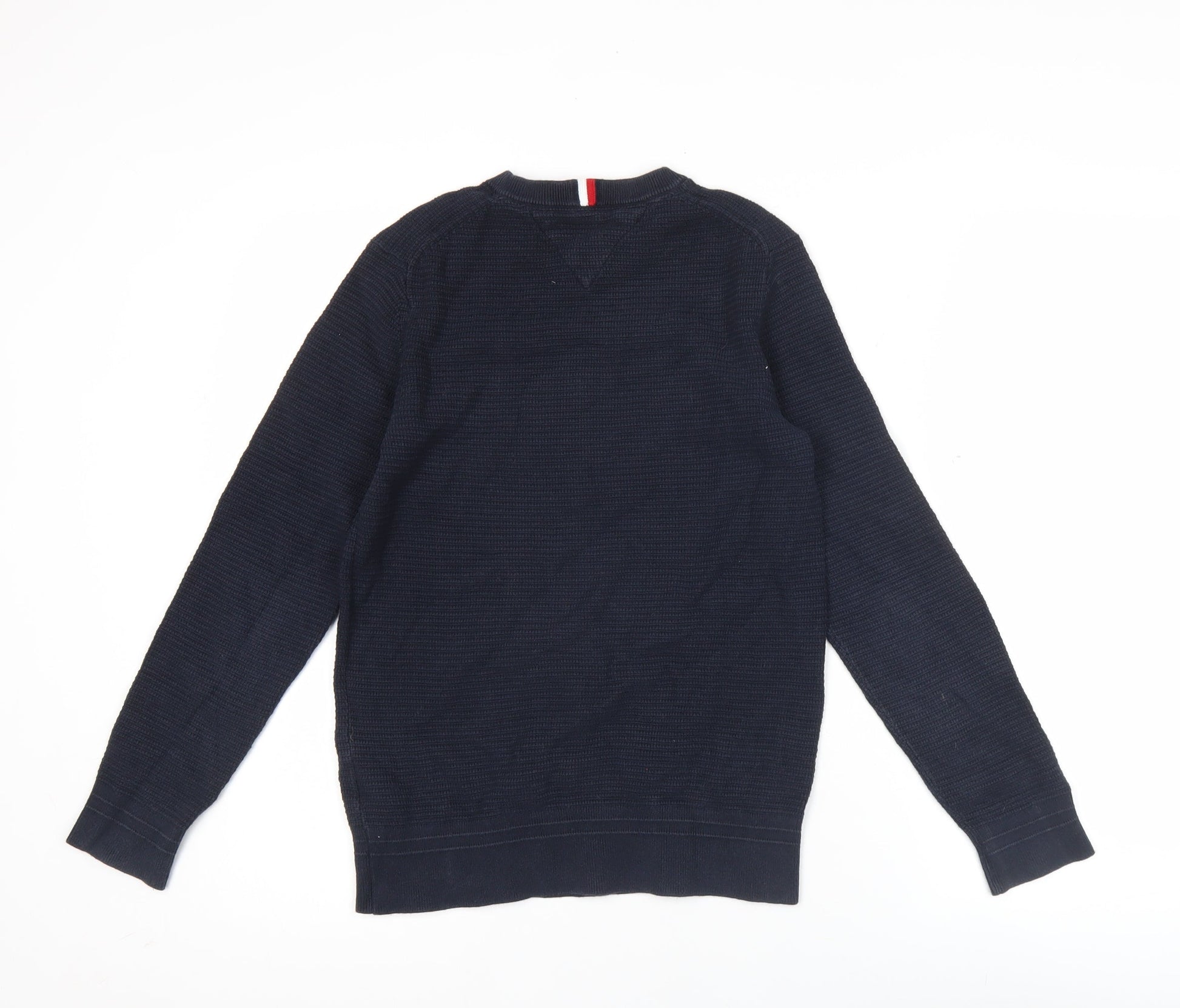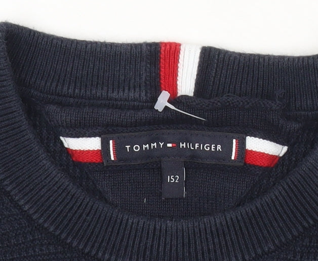 Tommy Hilfiger Boys Blue Cotton Waffle Knit Pullover Crew Neck Jumper Size 152