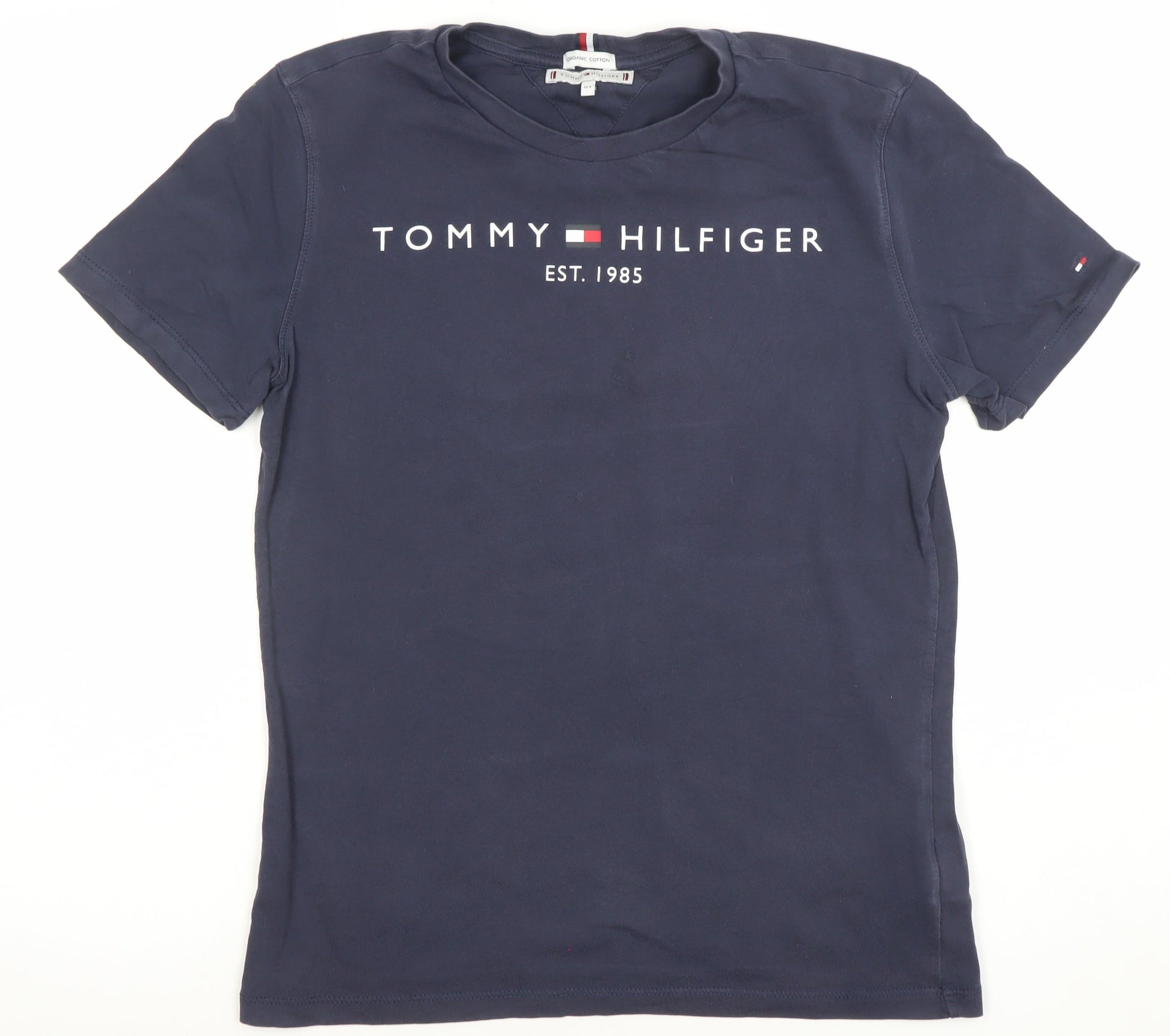 Tommy Hilfiger Boys Navy Blue 164 Regular Fit Cotton Logo T-Shirt