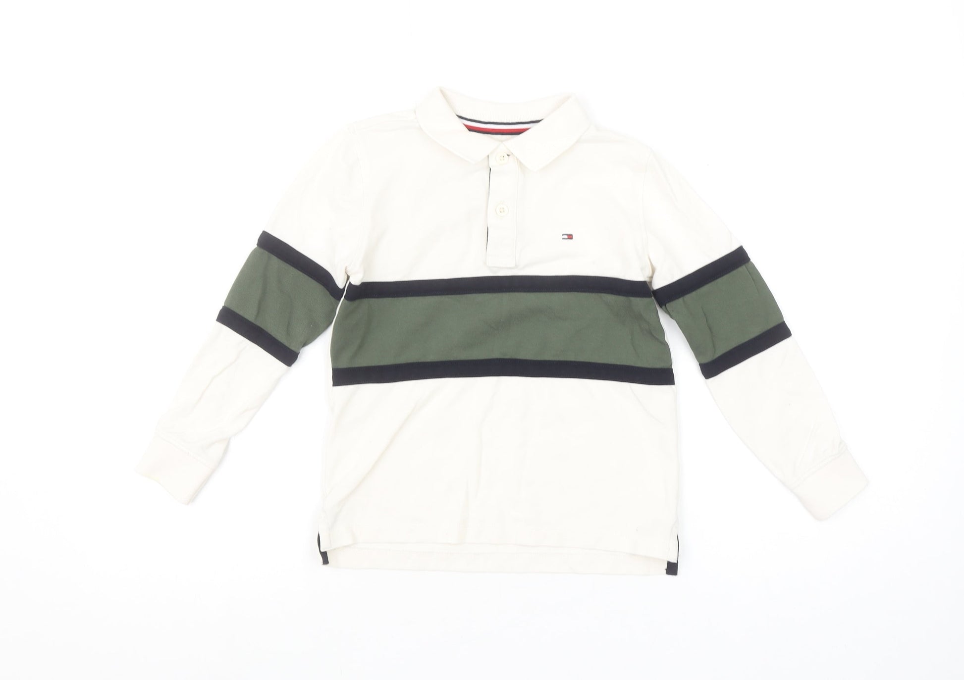 Tommy Hilfiger Boys White Long Sleeve Polo Shirt Size 6 Years