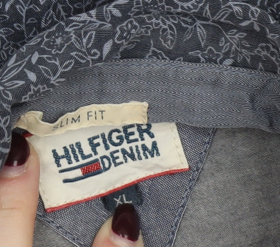 Tommy Hilfiger Denim Men's Blue Floral Slim Fit XL Button-Up Shirt