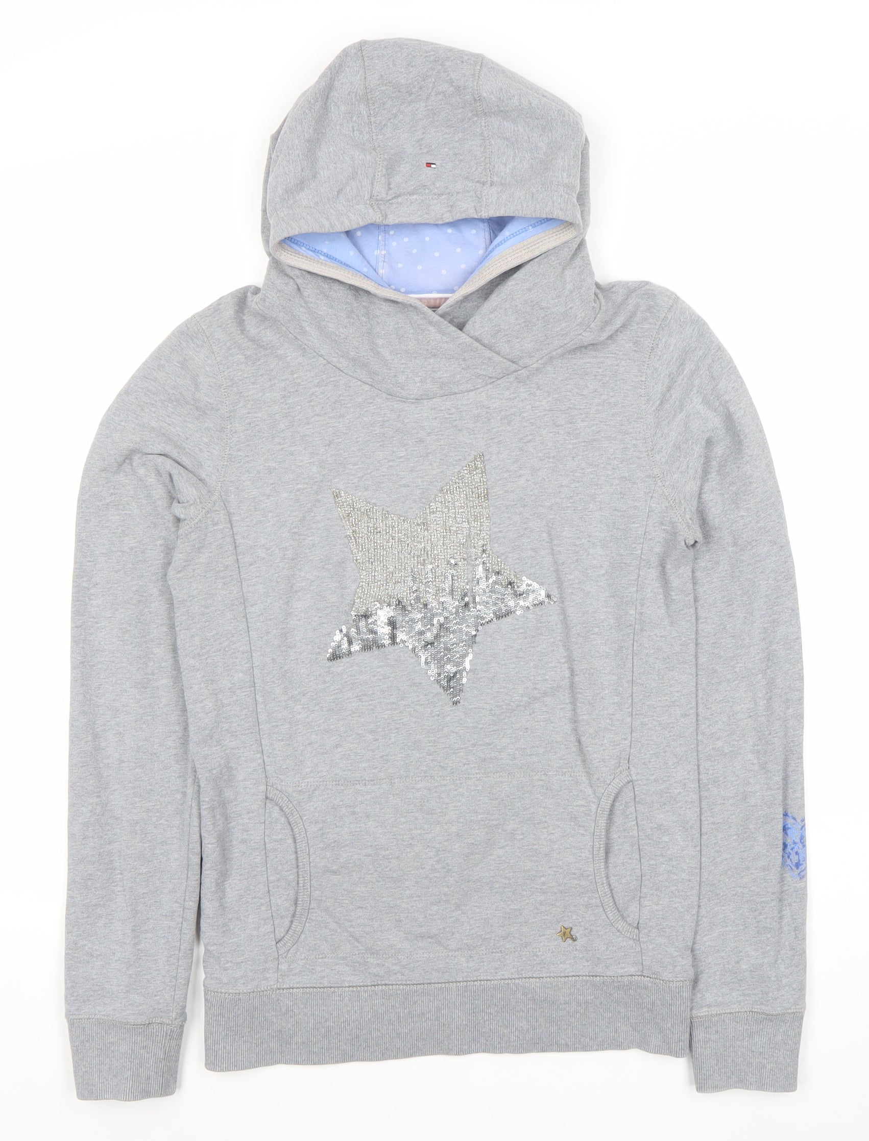 Tommy Hilfiger Girls Grey Sequin Star Pullover Hoodie Size 16 Years
