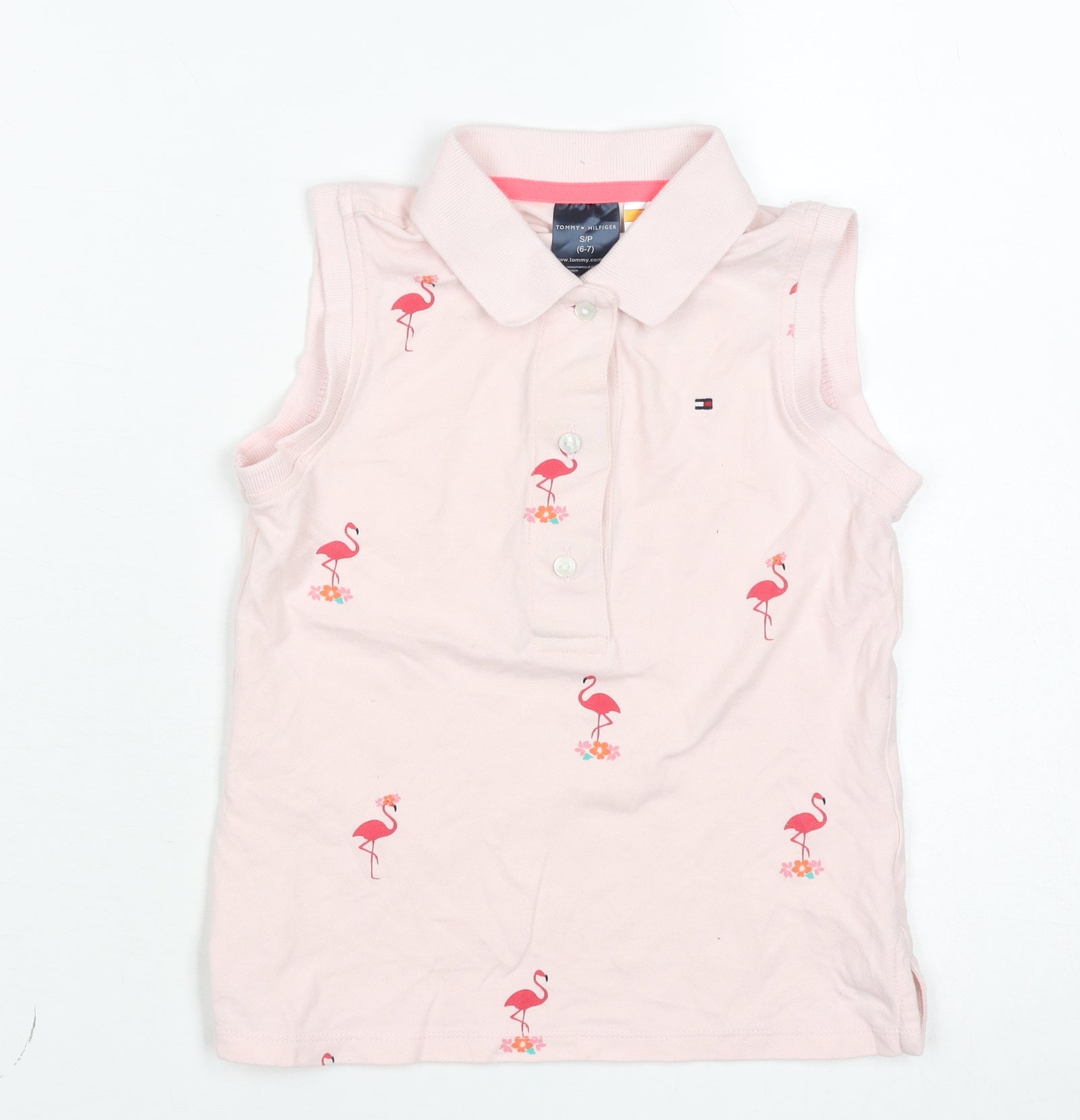Tommy Hilfiger Girls Pink Flamingo Sleeveless Polo Shirt 6-7 Years