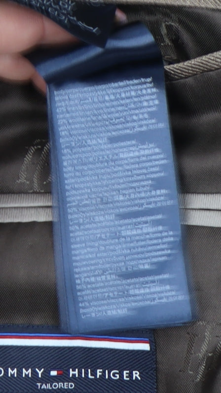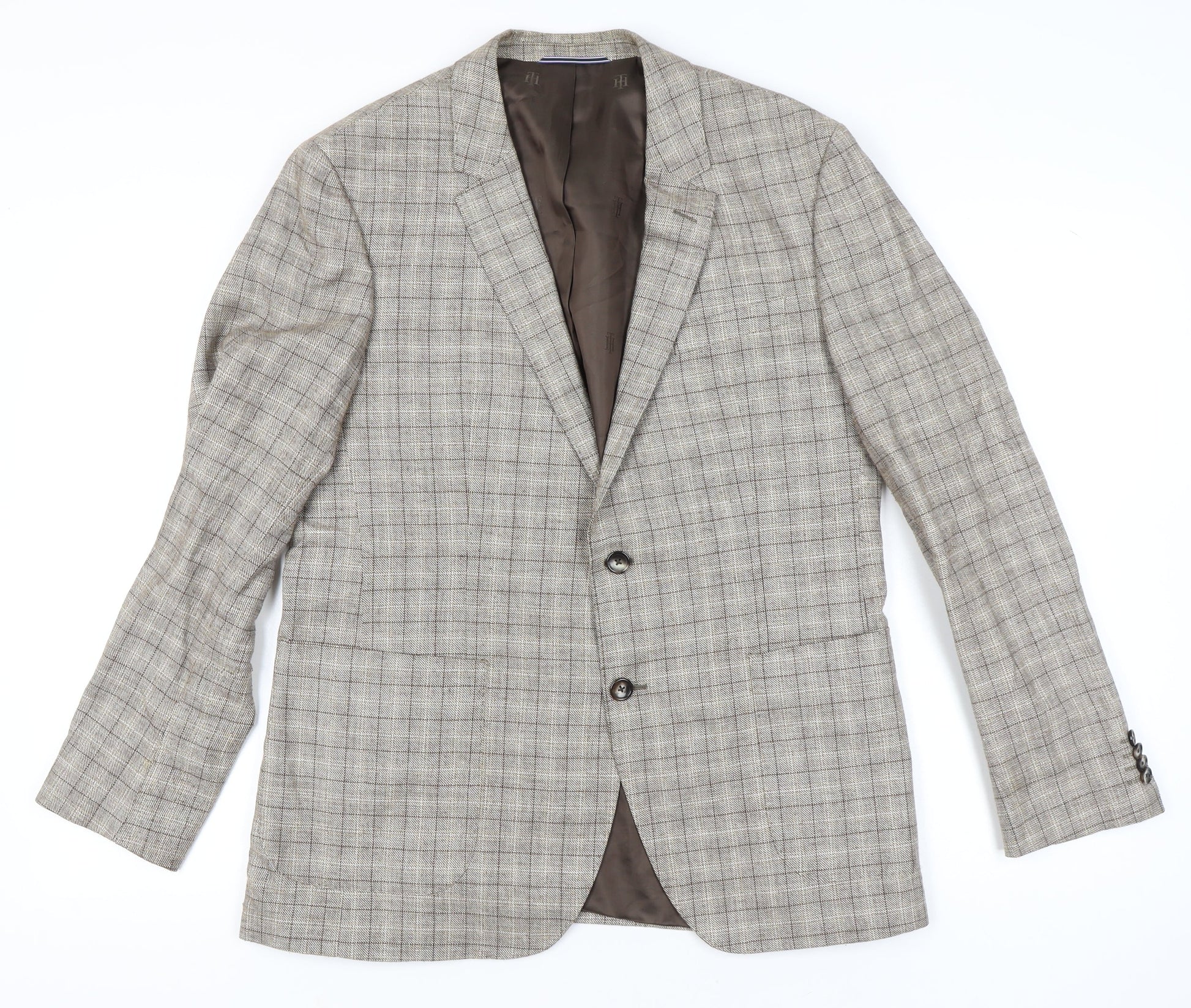 Tommy Hilfiger Men Beige Check Blazer Jacket Size 52 Regular Fit