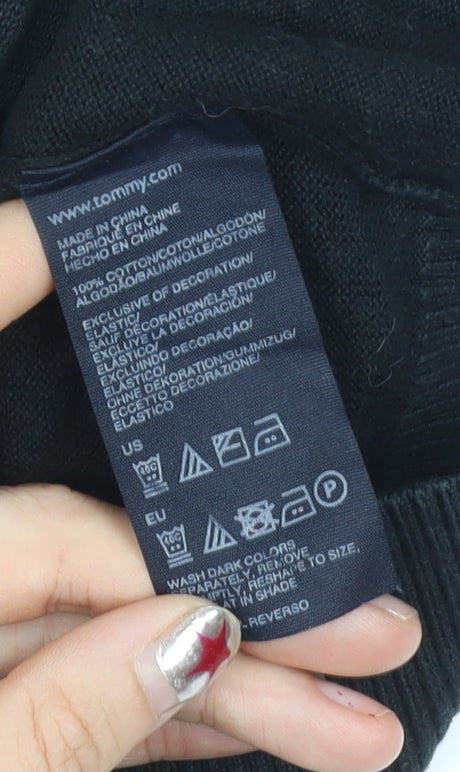 Tommy Hilfiger Men’s Black Cotton V-Neck Pullover Jumper Size S